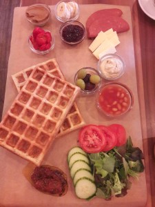 Yes, there’s a vegan set brunch menu as well! I’m not crazy about having sweet and savoury things on the same plate, but I handled it well. We shared this between two of us, but you can get an extra waffle if you think you’ll need it. The savoury toppings were sun-dried tomatoes, salad, baked beans, olives, hummus, cheese, and ham – all solid options. And the sweet things were jam, strawberries, fruit, and speculoos spread. It was quite exciting, but I think I’d probably go for a crazy, indulgent, sweet waffle again next time. Which hopefully will be soon!