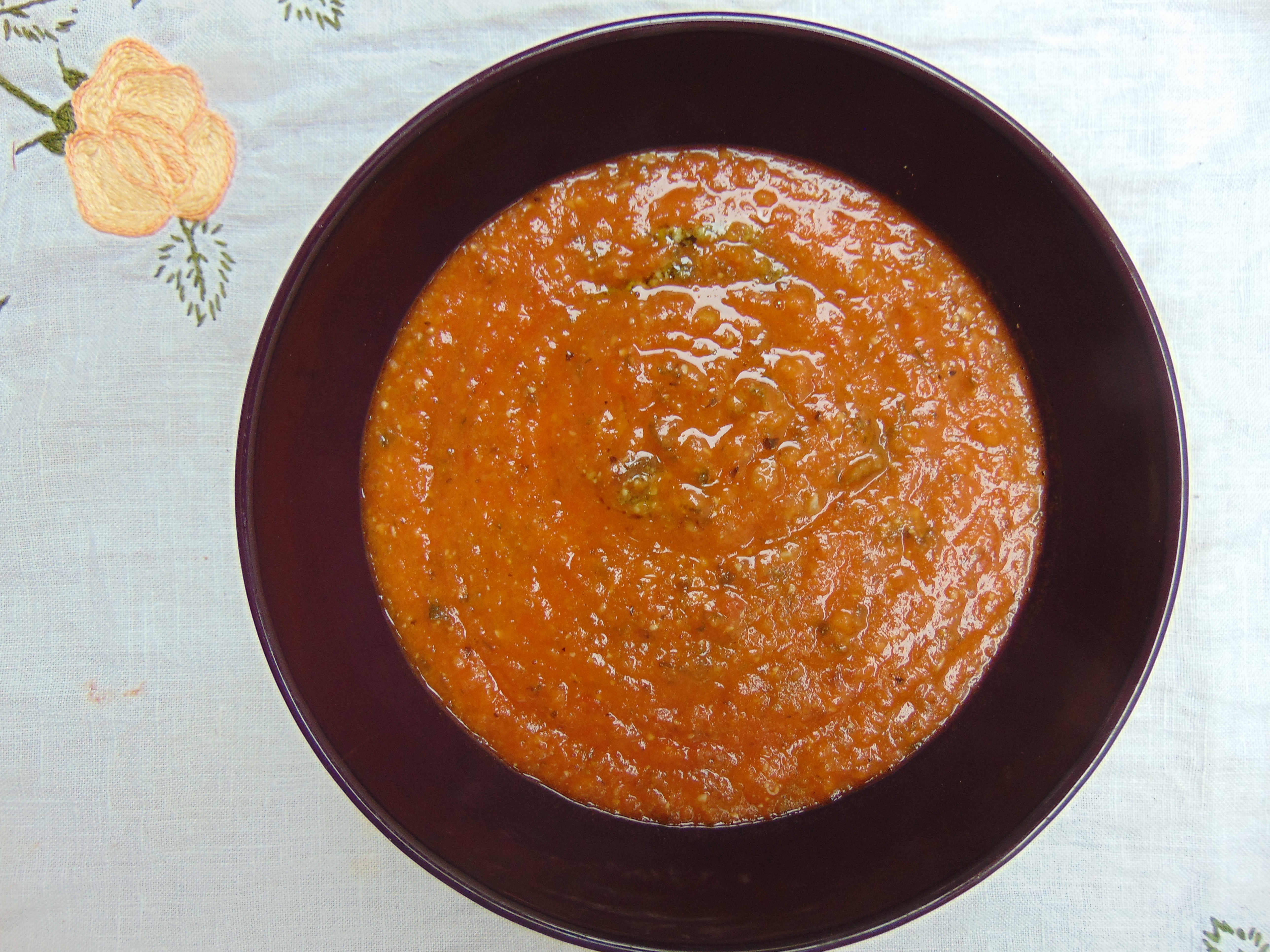 The storecupboard meal prompt was one I was looking forward to, as I find shopping and meal planning a bit draining sometimes. Over at The Opposite of Indifference I read about this tomato and lentil soup and knew I had to try it. Simple, filling tomato soups are a lifesaver in our house! This one was indeed simple and delicious. I jazzed it up by chucking in half a jar of pesto leftover in the fridge, but it would have been flavoursome without that too.