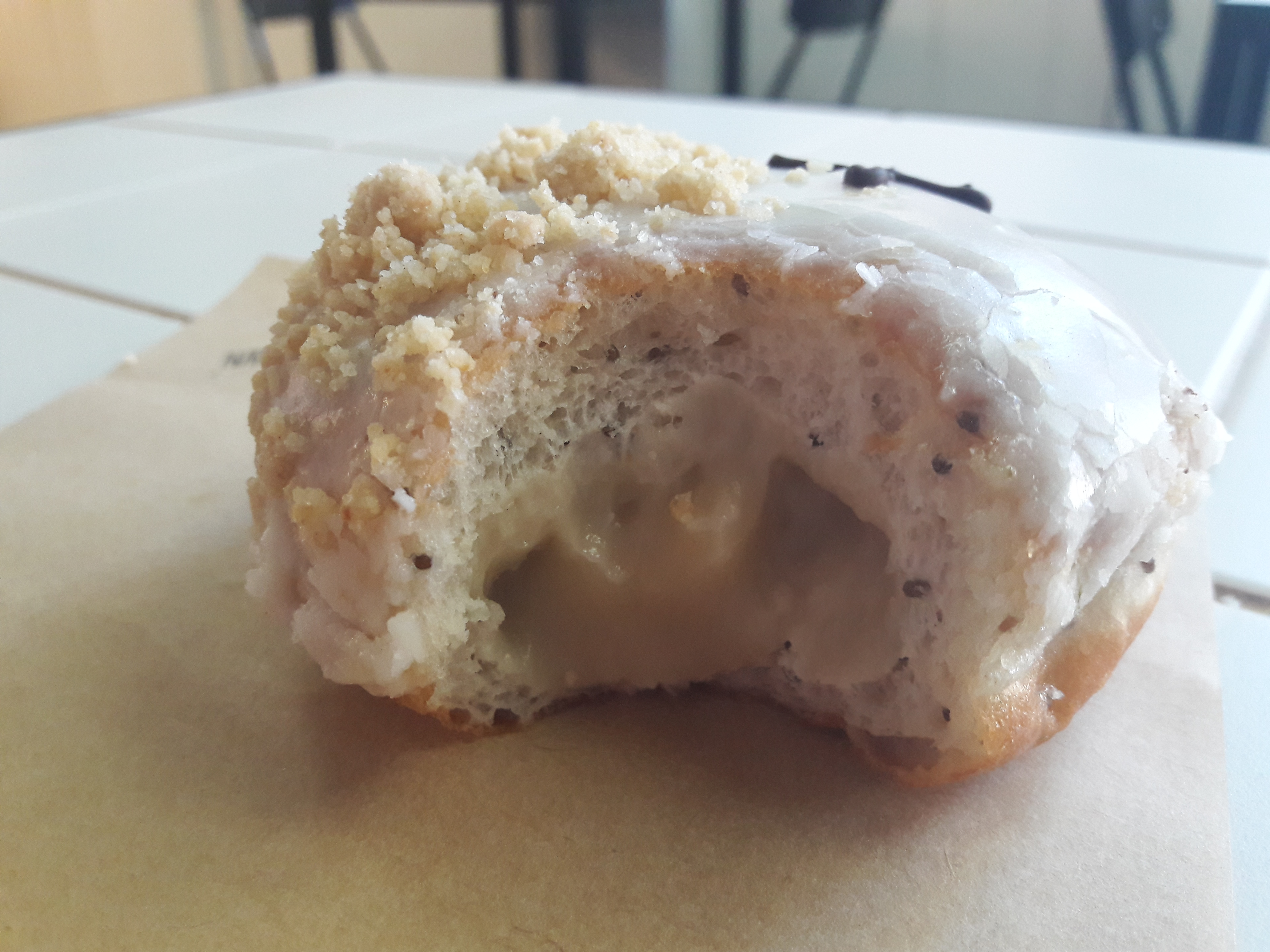 Dr HH couldn’t resist this special 4th July flavour: key lime custard. He reported that it was generally lovely and zesty, if occasionally a bit too sharp – that’s the risk you run with lime, though. Still, it was a good filled doughnut.