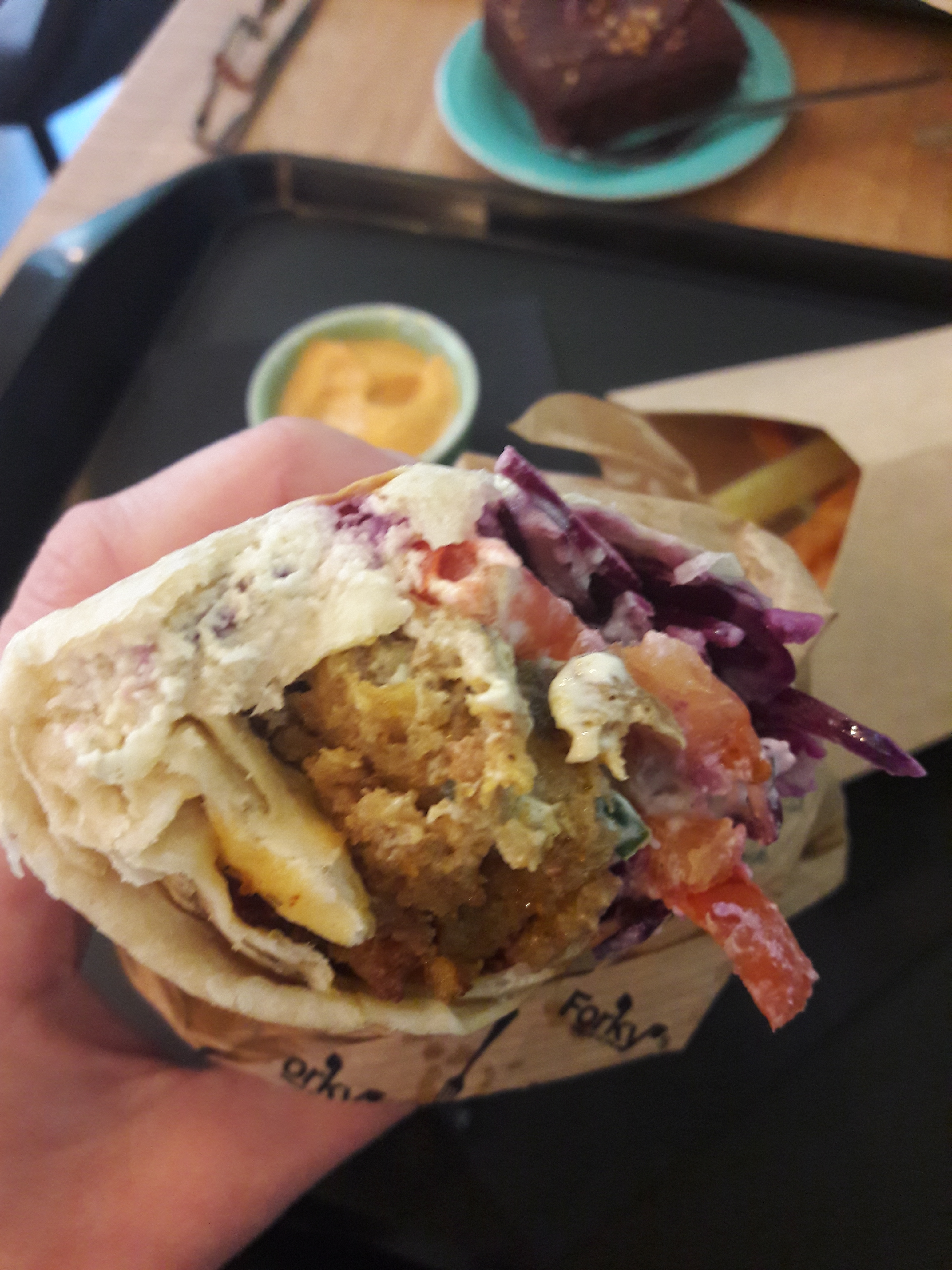 On my first visit I got the kebab (it’s an all vegan establishment, so you can take your pick from the menu). I never ate a kebab when I was a meat eater, and possibly never even tried a veggie version when I was a vegetarian. But now I’m a vegan (and living in Europe may also be a factor), I can’t get enough of kebabs. I judge a kebab on the texture of the mock meat, and the seasoning. In my opinion the best vegan kebab in Prague can be found at Paprika, but this is a solid runner up – it might even have nicked the top spot were it not for the abundance of red cabbage rolled up in there.