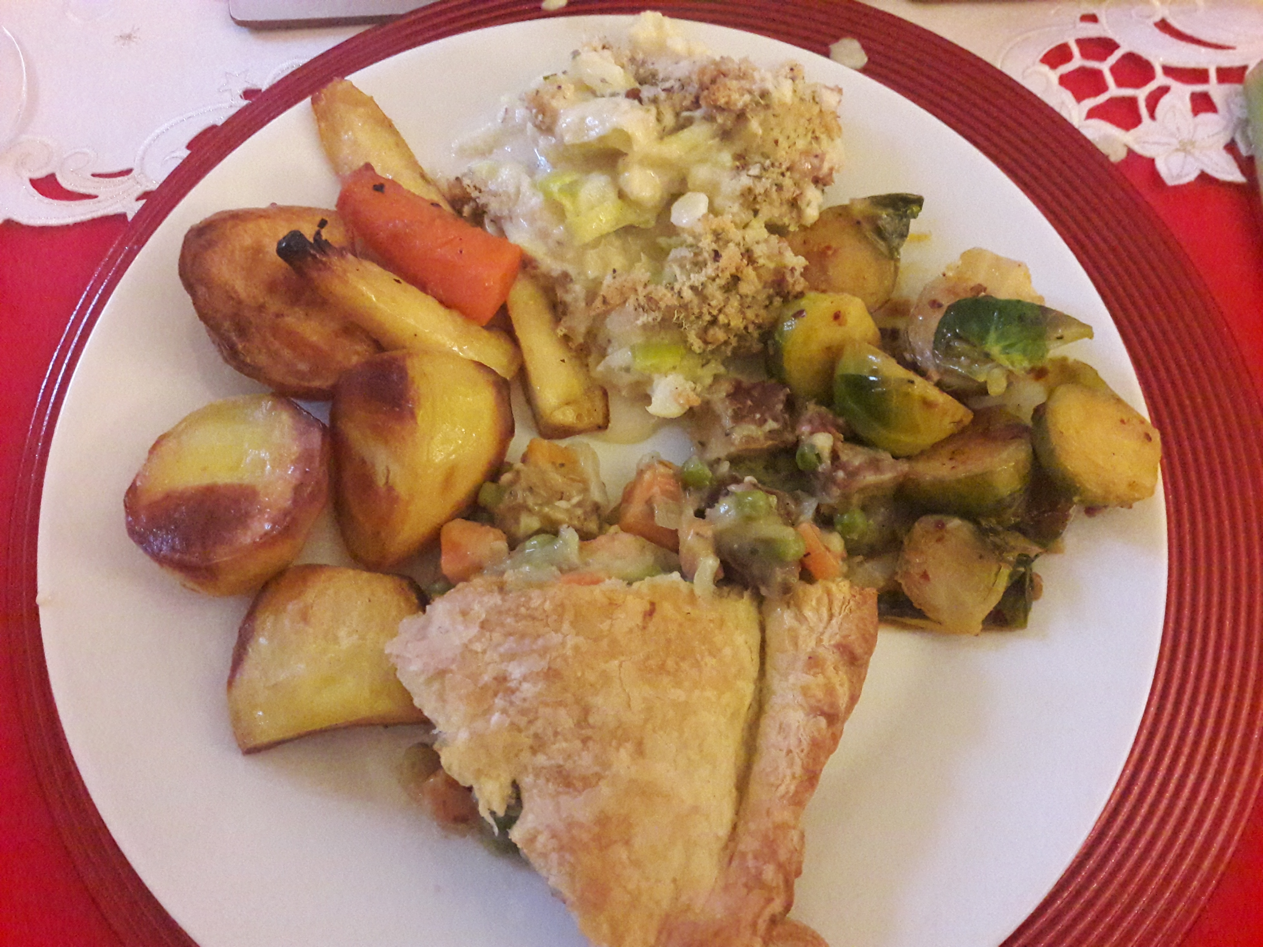 For Christmas dinner, I hadn’t had much time to experiment so we largely stuck to the classics. I made the same vegetable pot pie from The Superfun Times Cookbook that we enjoyed last year, and my mum prepared all the usual sides. I added the cauliflower cheese from Vegan Christmas, and we allowed Dr HH to bring some chilli flakes to the table this year: he made some delicious spicy Brussels sprouts. It was a proper feast!