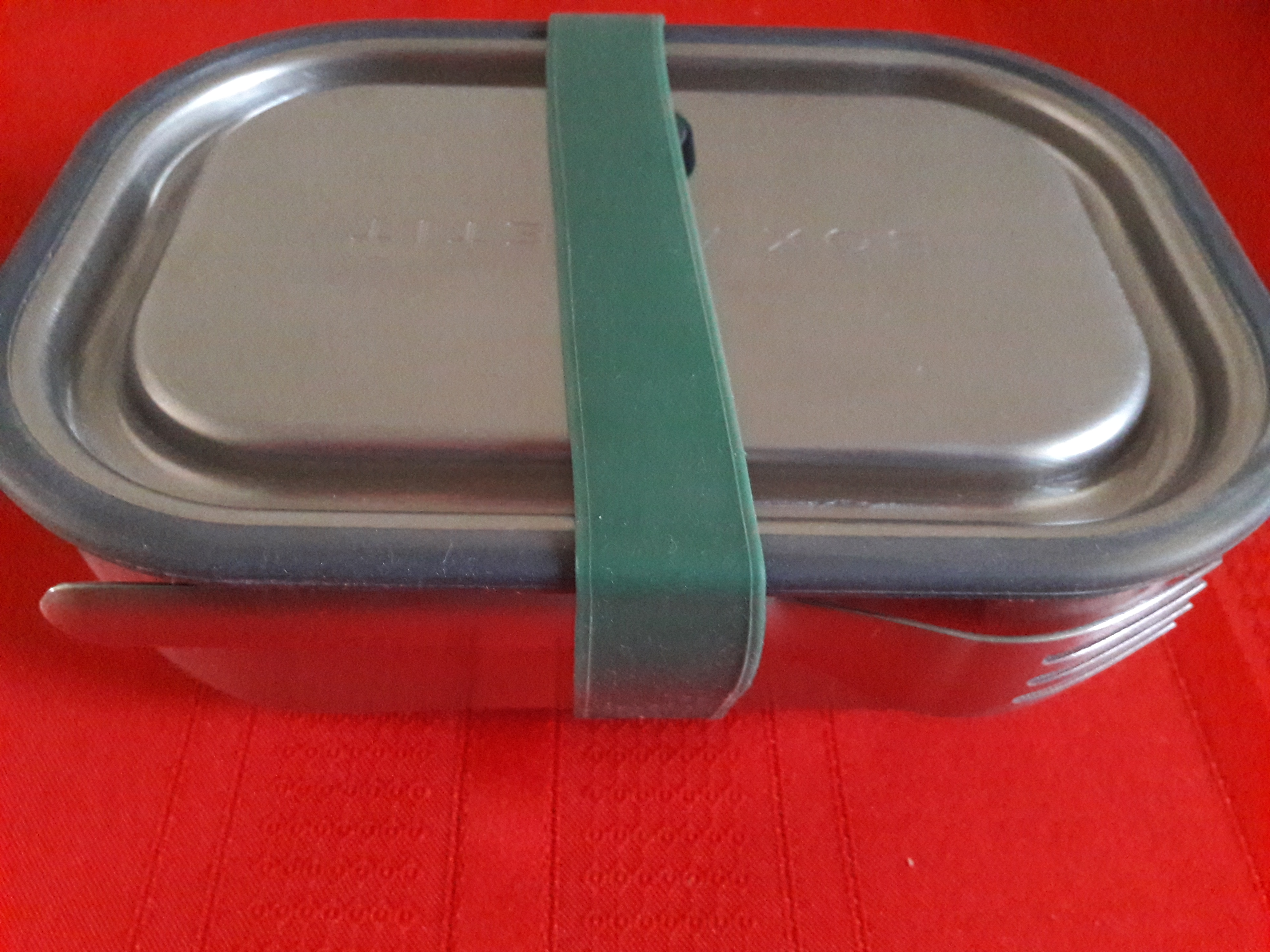 I think there are few things more exciting than getting a new lunch box! This one is metal, leak-proof, has a divider, and has a fork strapped on. This will serve me well on my lunch breaks.