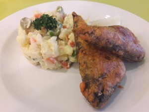 As always, we started our Christmas eating in Prague. Like last year, Puro was serving up traditional Czech Christmas dinner every Saturday in December, and we were happy to tuck into the traditional carp and potato salad, all veganised.