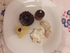 And as usual, we went to the vegan Christmas festival to pick up a box of Christmas cookies from Nebeske Dorticky, a Brno-based vegan baker extraordinaire. It was a really good selection this year – I especially loved the little round triple decker cookies.