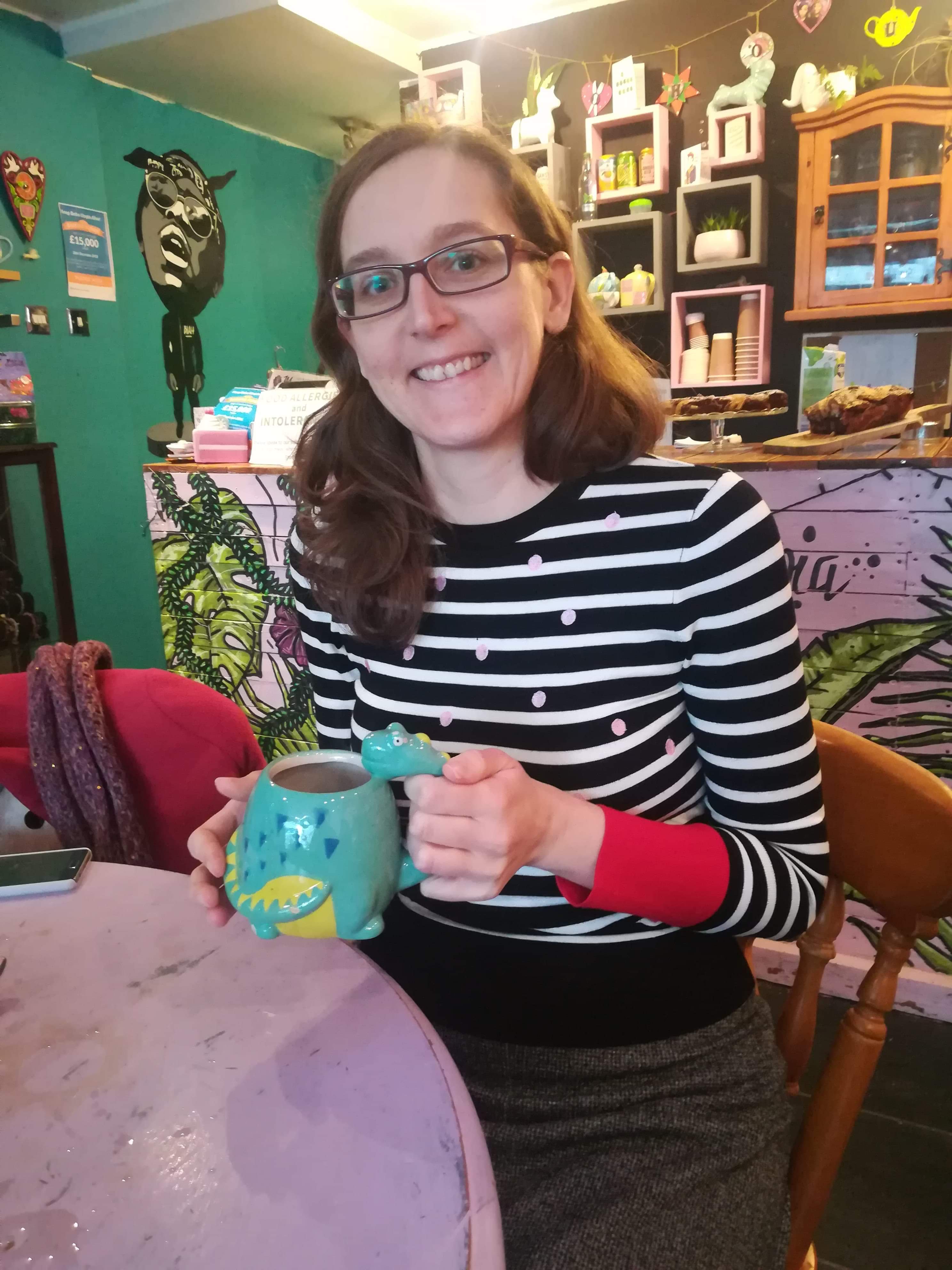 I finally got my opportunity when I was home in December. It’s a bit of a trek from my mum’s house to Withington, where the cafe is located, but it was worth it. It’s a really relaxing, friendly place, and perhaps my favourite thing about it is that you can choose your own mug from a very exciting array. I couldn’t resist this dinosaur mug, of course.
