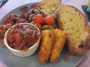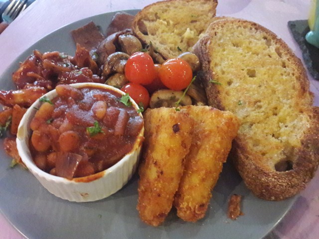 Perhaps Dr HH made the winning choice with the big breakfast. The hash browns were wonderfully crisp on the outside, and the bread for the toast was also very good. The mushrooms and cherry tomatoes were well-seasoned and well-cooked. The BBQ jackfruit sounded like an exciting addition, but he found it a little underwhelming taste-wise and not quite as tender as jackfruit usually is. But the homemade baked beans were extremely flavoursome, and the bacon was the surprise hit of the whole spread – it’s quite rare to get good fake bacon, but this was a triumph of both taste and texture. I’ll certainly be ordering this when we go back.