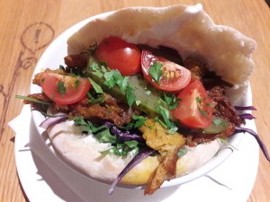 Recently, the most famous Czech dish of all, svickova, also made it onto the menu. It’s a weird concoction to an outsider, but I’ve become accustomed to it over the years: a root vegetable sauce, hearty dumplings, slabs of mock meat, and a dollop of cranberry sauce. Dr HH says this is one of the best versions he’s had, due to (a) the lack of whipped cream, which sometimes makes a perplexing appearance, and (b) the excellent quality of the seitan. I haven’t tried this one yet, but I’m certainly keen to.