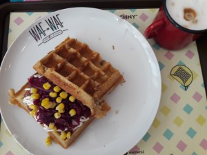Waf-Waf rivals Wafflin on the Prague brunch scene, but there are some differences. I have to say that I prefer the Waf-Waf aesthetic: it’s a pretty place. But on the downside, there’s no table service – you have to order at the counter and listen out for them calling your order so you can go and pick up your tray. Also, it seems to be more popular with the younger crowd than Wafflin, and if you’re an old lady like me there are few things worse than spending your Saturday morning sitting next to a bunch of teens.