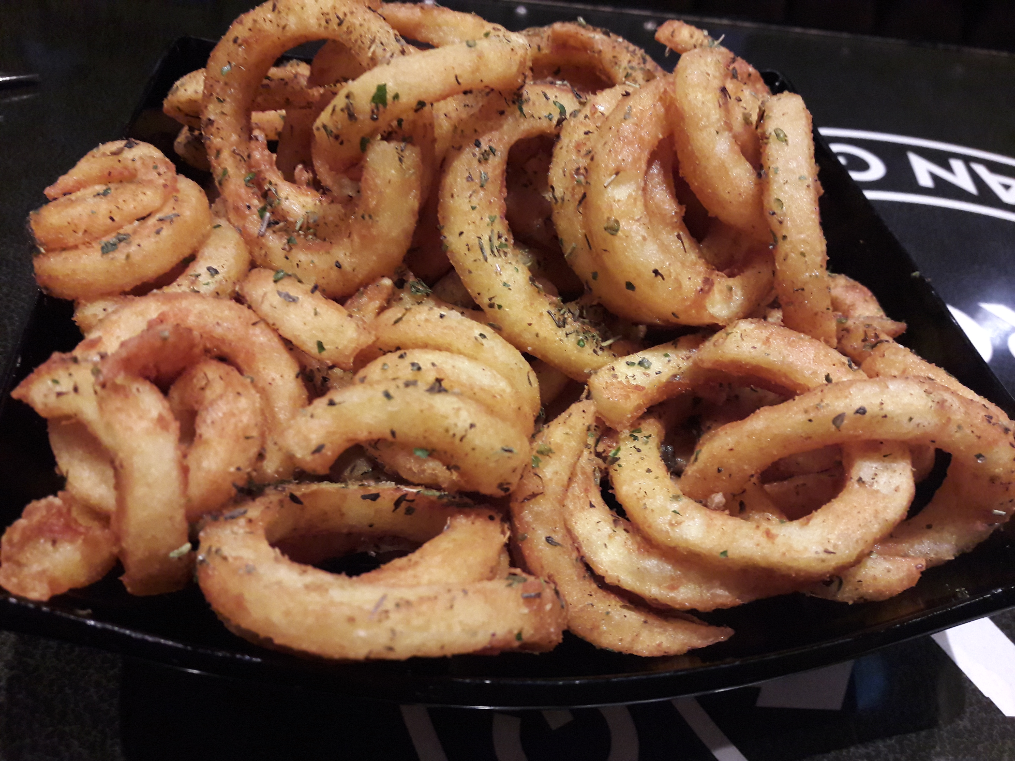 Not only that, but he also put away more than his fair share of these curly fries! There were a few different kinds of potato sides, and additional sauces unavailable, but we only had eyes for the curly fries because they’re not really a thing in Prague. Oh, they were beautiful, and seasoned to perfection!