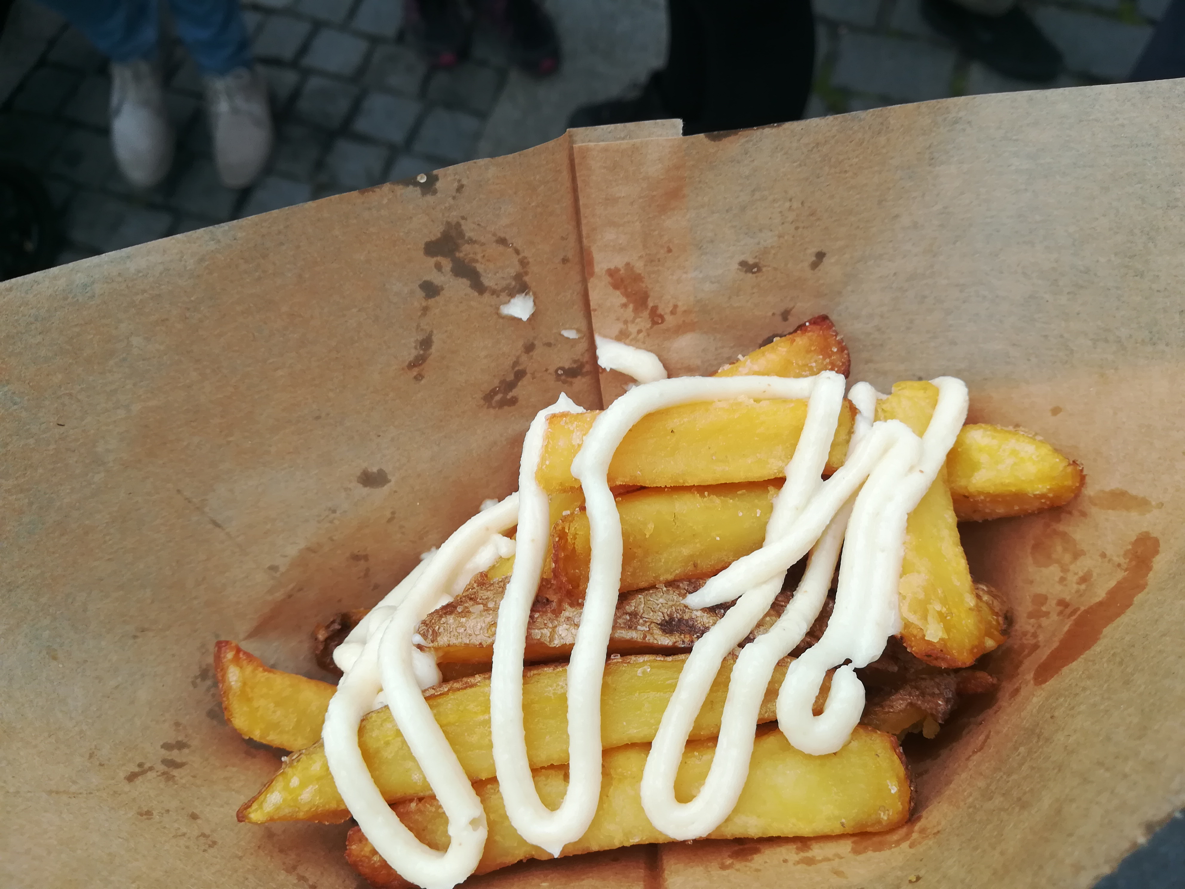 At this stage I was starting to get a full belly but I thought I could sneak in one more little savoury before moving on to pudding, so I opted for some fries with garlic sauce from Sinea.  Sinea are a Czech (I think) company that sells a wide range of pre-made vegan goodies, and this stall seemed to be primarily aimed at selling sauces and sides (potato salads and the like).  The chips were excellent, chunky, crispy, and had the skins still on (and there were certainly more than it looks like in the picture).  The garlic sauce was a bit sweet and not garlicky enough, so they had failed in their attempt to hawk me some sauce, but I would buy chips from them again without hesitation!