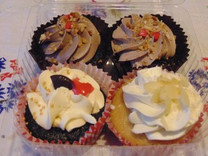 I wasn’t done with picking up nommy treats just yet, and stopped off at a Prague vegan food festival favourite, Nebeske Dorticky.  I picked up four cupcakes from here for some evening treats: two Ferrero Rocher, a Rafaello, and, a chocolate and cherry.  I am happy to report that these cakes lived up the usual high level, perfectly baked cupcakes with delicious icing.  Ms. HH ranked the Rafaello the best of the bunch, and I ranked the Ferrero Rocher ahead of the chocolate and cherry.