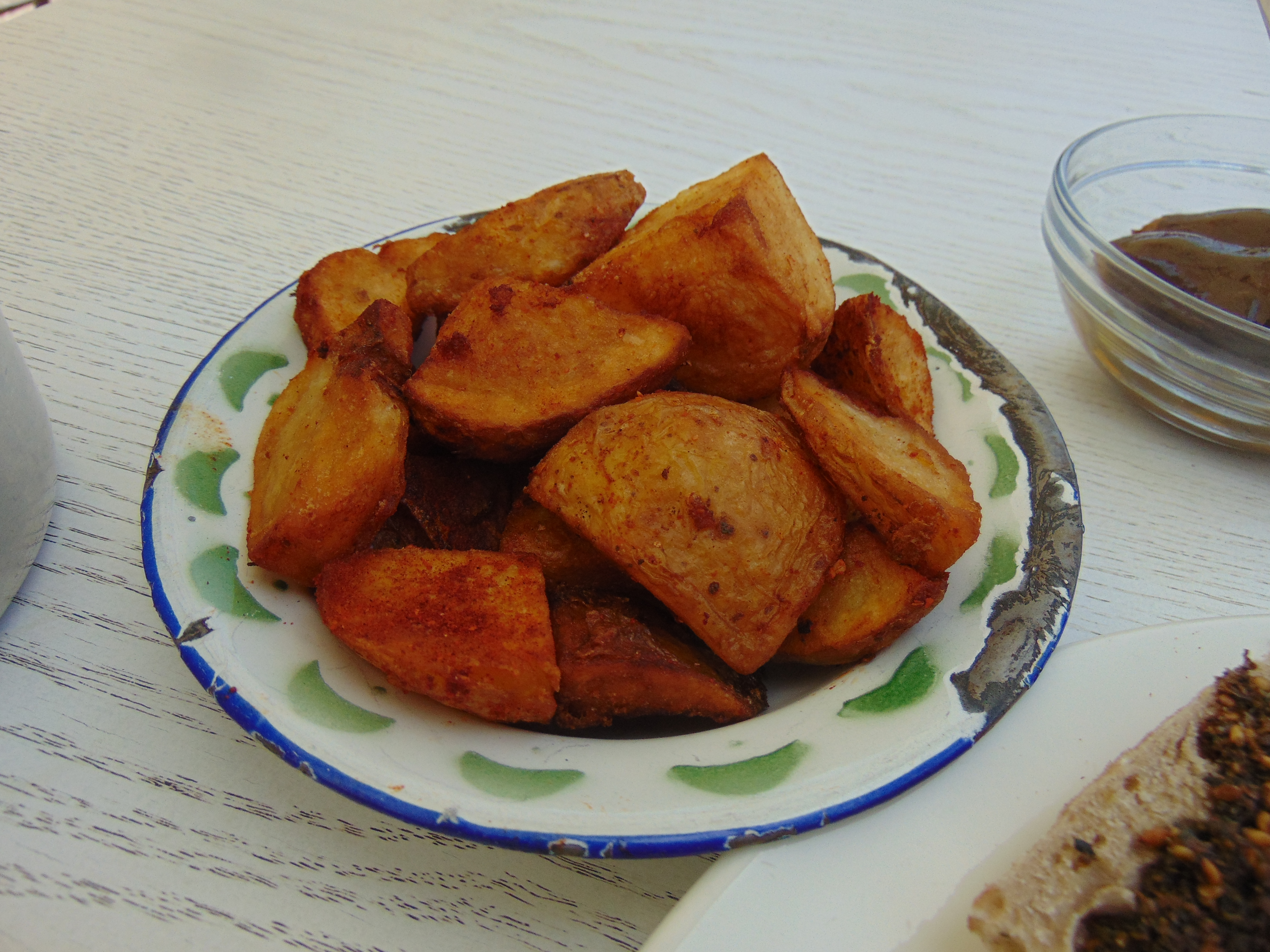 My friend had recommended a place called Hashem, which was listed as all vegetarian on Happy Cow, so we were keen to give it a try. It was packed when we arrived, but we managed to grab a recently-vacated table. We asked for a menu, but didn’t get anything, and nobody ever returned to talk to us or take an order. I was hungry and confused, so we bailed out. We went into a place further down the street that had falafel, hummus, and chips, and that was basically where we got all of our food on our trip.