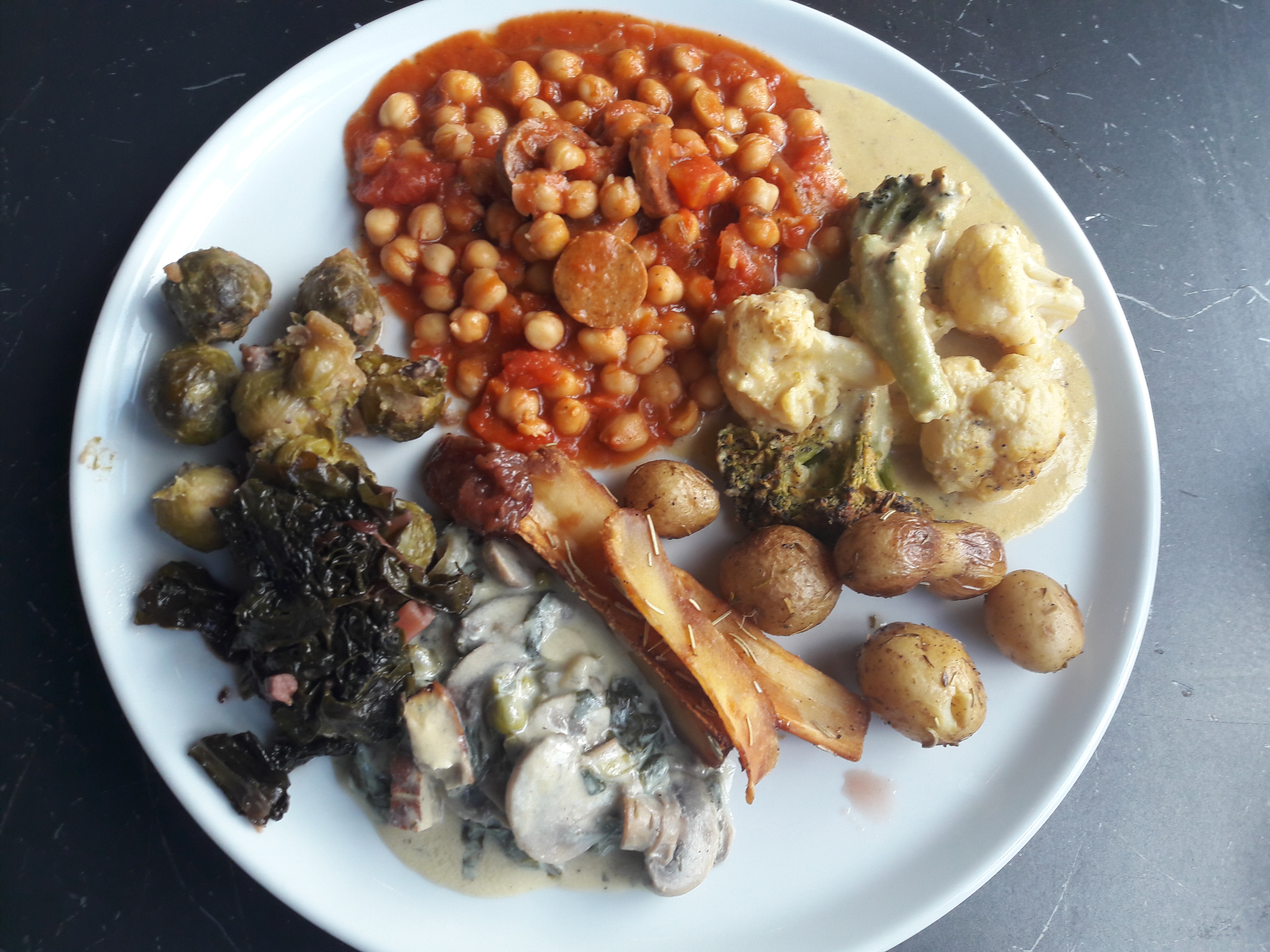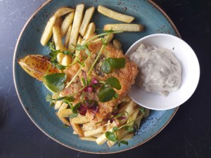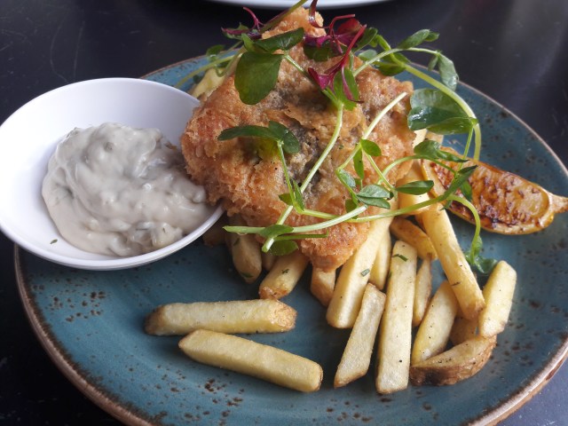 It has great reviews on Happy Cow, as well as a convenient central location, so we thought we were definitely onto a winner. I wanted to go to try the tofish and chips, and Dr HH wanted to dig into the buffet. And so he did! He was impressed by the range of options, and found everything tasty, but not really spectacular. And it was very expensive for unspectacular food! Among other things, he had a kind of chickpea and sausage casserole, some cauliflower cheese, and various veg sides, but it felt like nothing we couldn’t make at least as well at home.