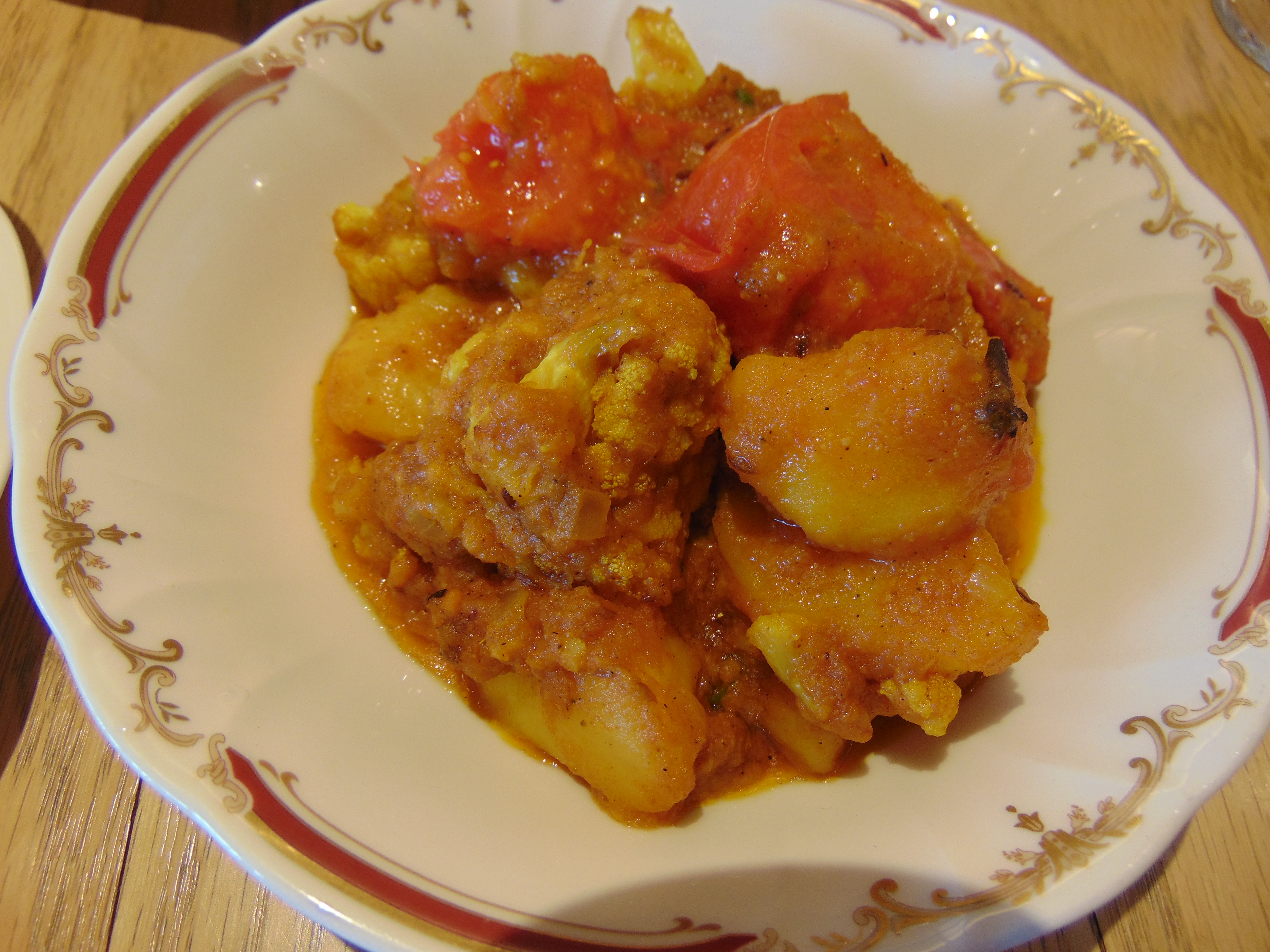 The menu clearly labelled which items were vegan, and there were plenty to choose from – there was also a lunch buffet on, which did not label the vegan dishes, which was a bit disappointing. So we stuck with the menu and each ordered a premier set: curry, salad, and a choice of rice or naan.