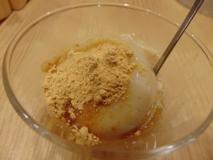 Would you believe that these are two completely different desserts?! The top one is soy milk pudding, while the bottom is ice cream. The pudding was strange and gelatinous, and pretty much exactly what you would expect from a soy milk pudding: fine, but weird. The ice cream was better, if only because it was less gelatinous, but these are never going to be contenders for the best dessert of the holiday.