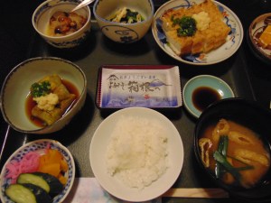 We were told to be in our room by about 5:30pm ready for dinner to start at 6pm – this is my ideal dinner time, so I was delighted! She brought us in one or two dishes at a time, explained what they were and suggested how to eat them, then scurried out. She’d bring the next dish 5-10 minutes later. Honestly, I wish everything had come at once and we’d been left alone, because I wasn’t confident that we were eating everything in the correct way, which is always embarrassing! However, I’m not sure the table could have borne the weight if everything had come at once: we got a lot of food.
