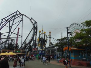 We were undecided about how to approach Mount Fuji. We didn’t want to climb it, because that would involve packing a lot of extra gear. So we thought it would be fun to go to the Fuji-Q Highland theme park and view the mountain from afar – from the top of the ferris wheel, essentially. But of course when we got there the weather was abysmal and we couldn’t see a thing beyond the theme park itself. So rest assured, Fuji is out there in the background somewhere. We didn’t see it, but at least we had a fun afternoon at a theme park!