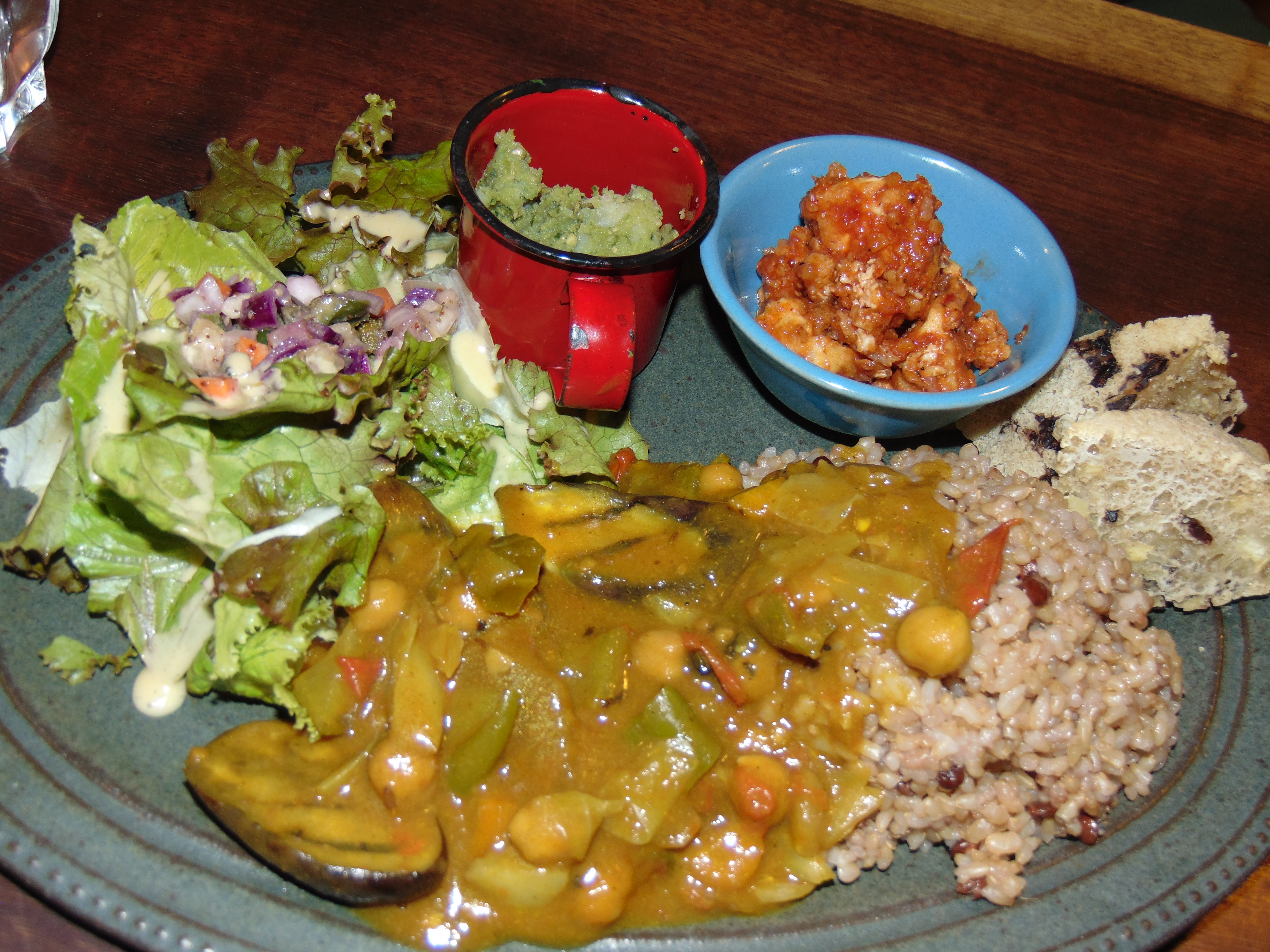 Nevertheless, we persisted. The menu was quite small, and truthfully not that inspiring. Dr HH ordered the curry plate, which involved a nice but not mind-blowing vegetable curry, some very good coriander potatoes, and a sweet tofu side dish, along with rice and salad. The verdict was that it was solid but unremarkable.