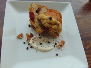 Dessert was a winner though! We ordered strawberry and choc chip muffins which had a great bake and flavour and weren’t too sweet – which seemed to be a hallmark of Japanese desserts, nothing seemed super sugary. It was a bit weird that it came chopped in half like this (everyone knows that the muffin top is all that!), but we could work with that.