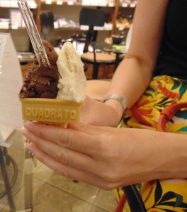 There was a separate vegan menu, and cabinet – that’s what I like to see! There were some pretty wild flavours, but I played it safe with Belgian chocolate and rice milk. They complemented each other well. The chocolate was very rich and creamy, a real treat. The rice milk was a bit bland…I don’t really know what I was expecting though. I think I played it a bit too safe really.