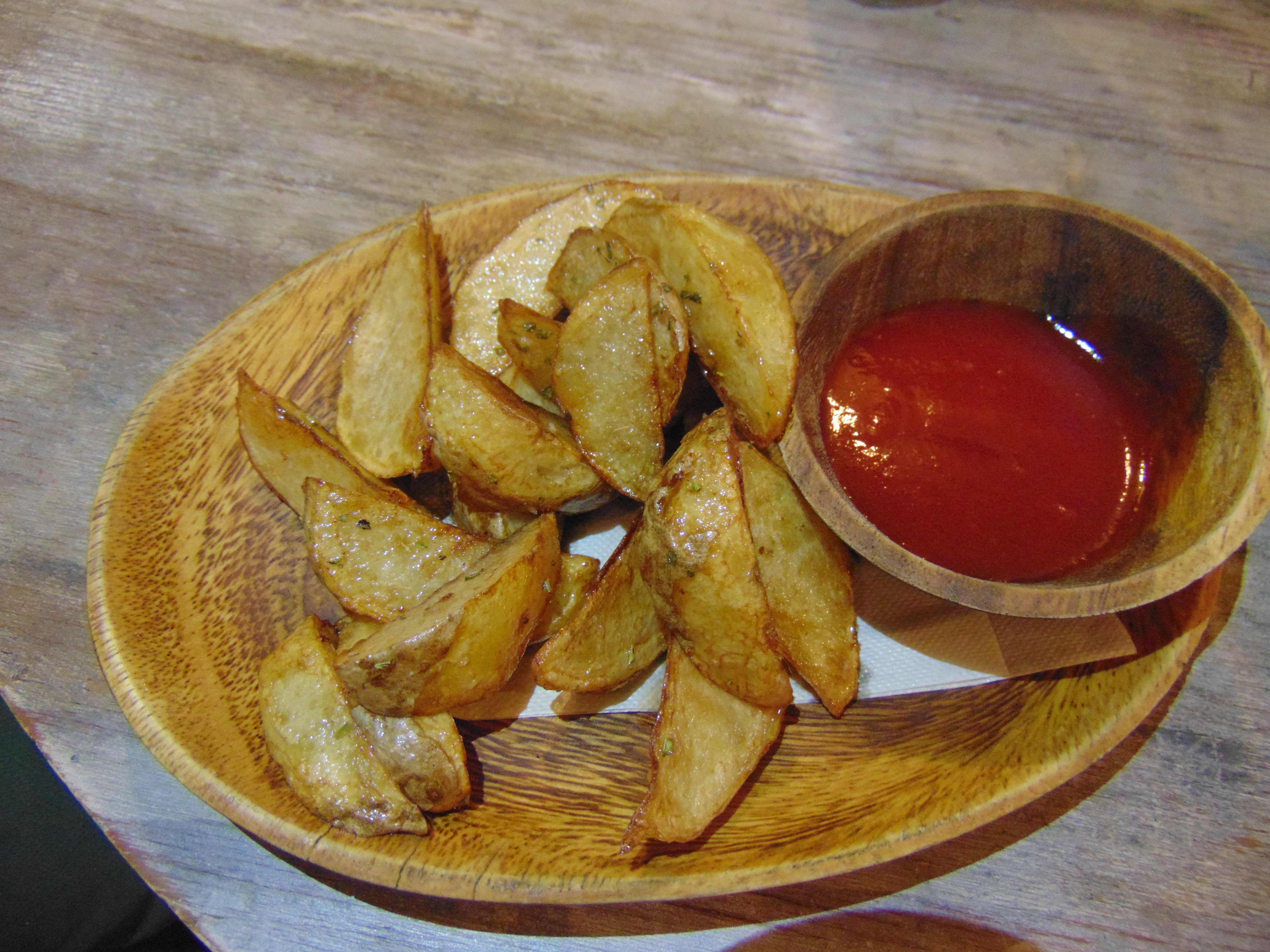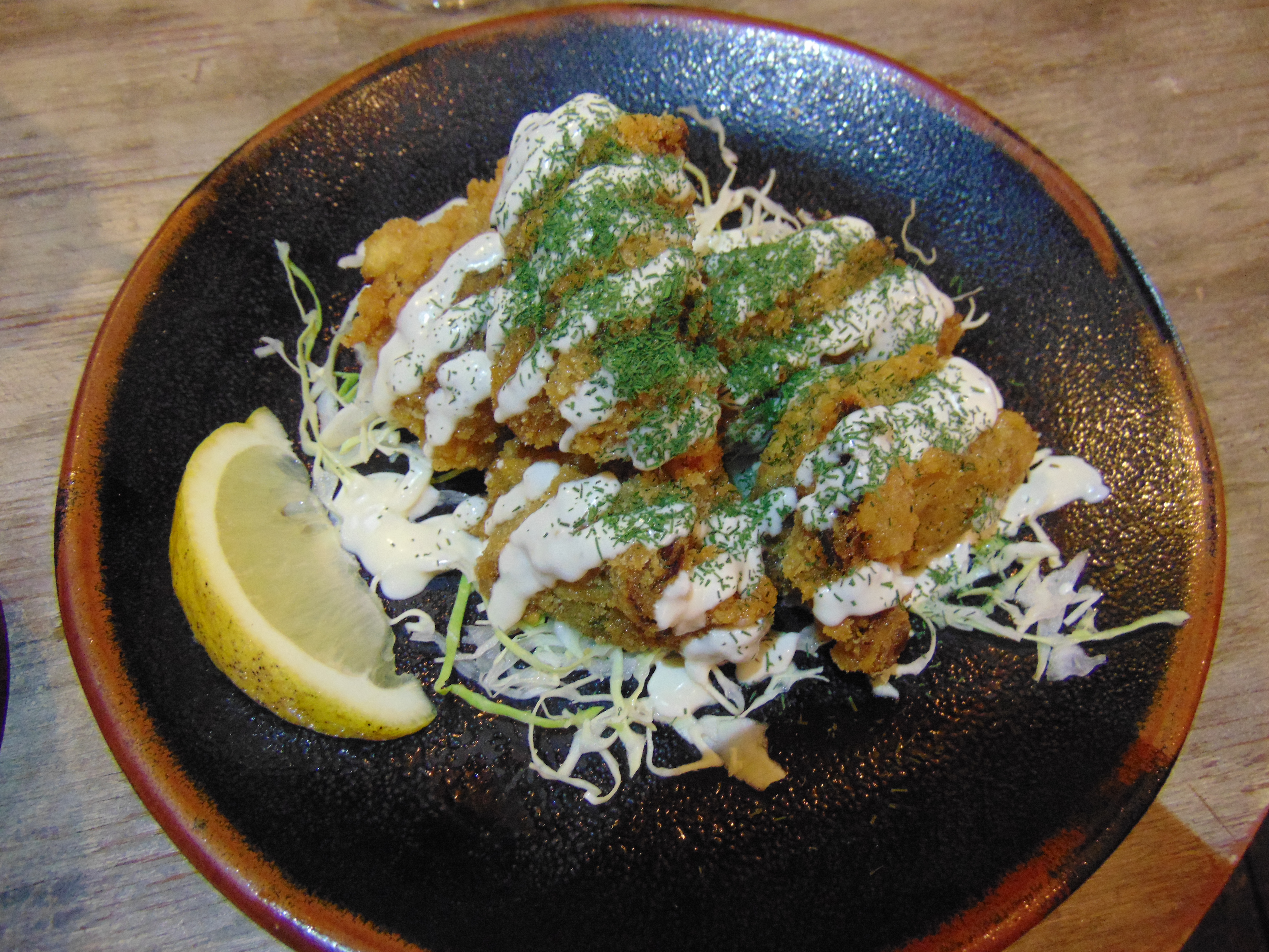 I was also very pleased with my dishes: deep fried oysters and French fries. Let’s first of all acknowledge that these are in no way French fries. That was a good thing though – in general we found the chips in Japan quite pale, and the wedges much better. These were no exception, and they were really beautifully seasoned with lots of herbs.