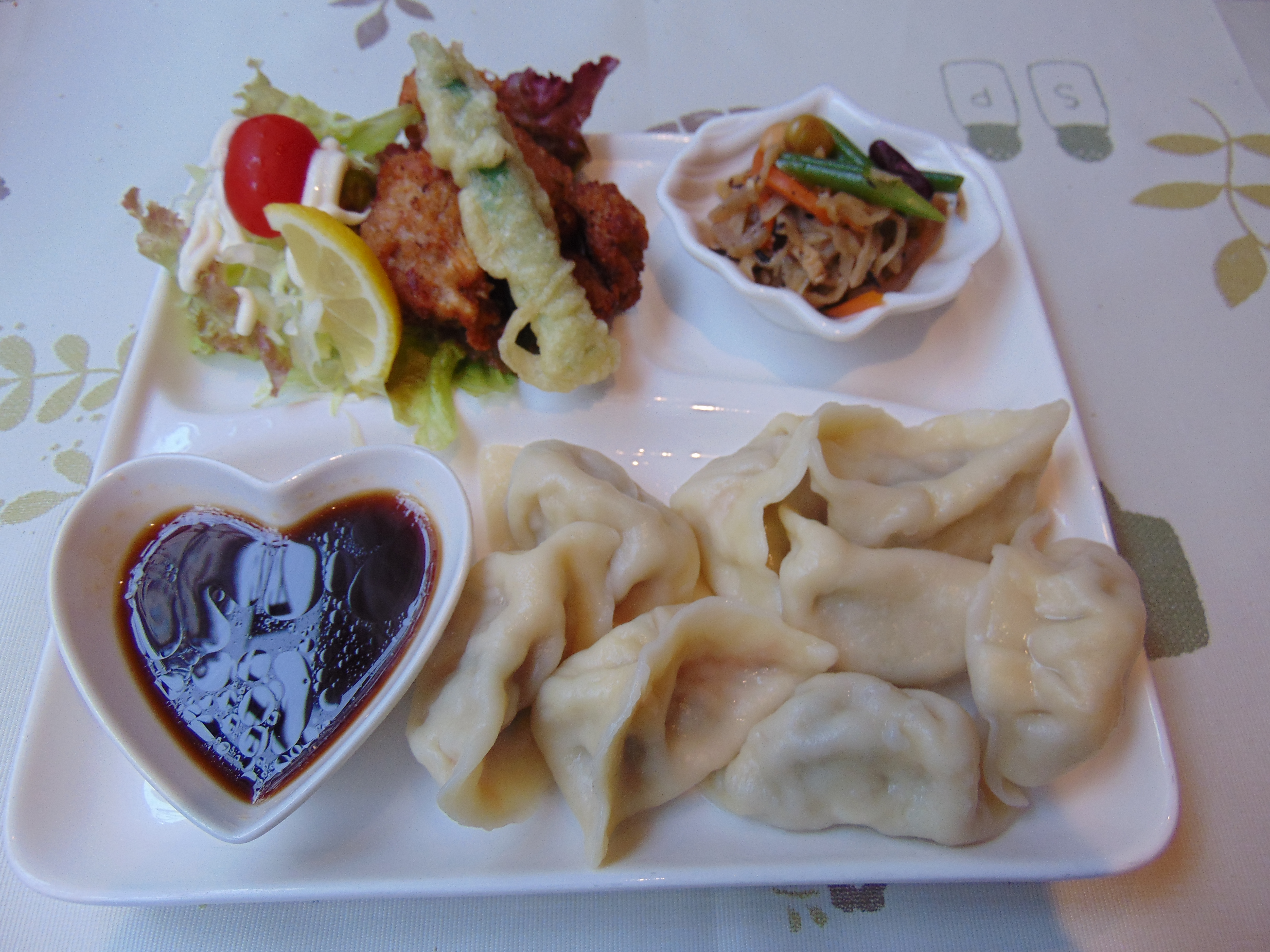The other great thing about Osaka was the food. We really loved Cafe Aina, which we visited when we returned from Ikoma. It’s a vegetarian place with plenty of vegan options – although there were plenty, Dr HH and I both ordered the same thing. Dumplings!