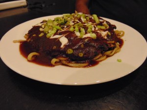 It does look pretty awesome, though I never heard of okonomiyaki using teriyaki sauce. It is usually something like mayo right?
