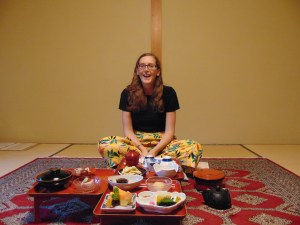 Our main motivation for visiting Koyasan was to stay at one of the Buddhist monasteries and enjoy a massive feast! This was another example of traditional Japanese accommodation, but it was known as a shukubo, not a ryokan. It had the same set up as the ryokan in Hakone though: simple room, beds made up on the floor, meals served in the room, communal baths. However, all the staff there were monks, and they did not wait on us quite so much (thankfully!).