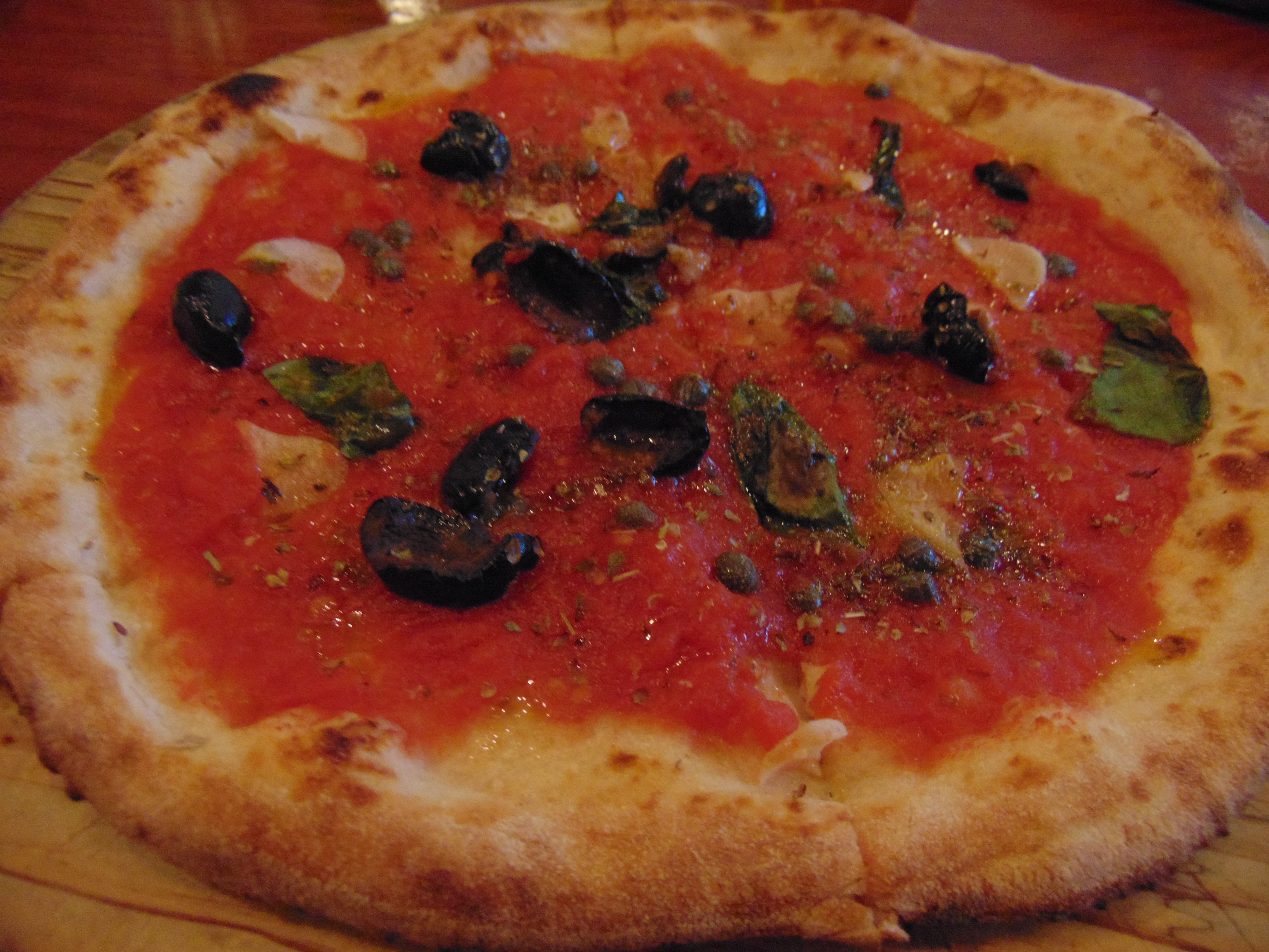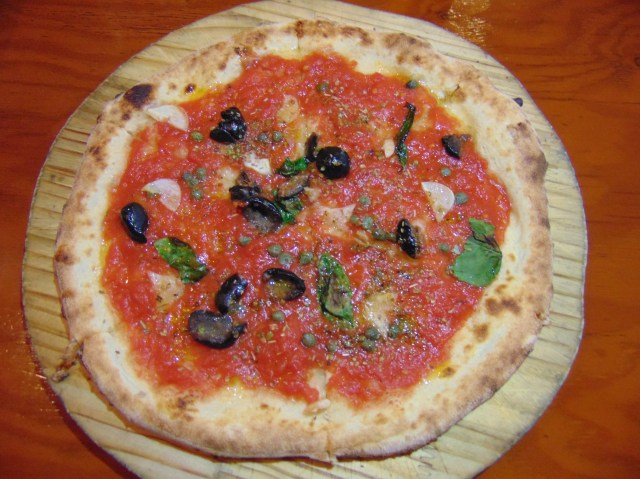 Fortunately, it was a good pizza nevertheless. I ordered the #2, which featured tomato sauce, garlic, oregano, basil, olives, and capers. Those are all very good flavours, so it was actually one of the tastiest pizzas I’ve had in a while. Still a shame about the lack of cheese though…