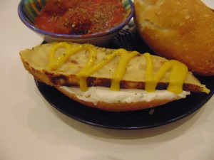 Like many small children, if I see chicken nuggets on a menu I simply have to order them! Is there anything more comforting than a chicken nugget?! These were great. The mock chicken was really tender, and the coating was good and crispy. I’d be happy to eat these every day!