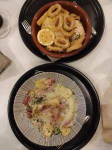 When we returned on our last night we couldn’t resist getting the calamari again, and this time we also shared this dish of cheesy, bacony potatoes. I’m not sure if it’s traditional Spanish tapas fare, but unsurprisingly, it was really good. Gooey, meaty, carby…three of my favourite things!