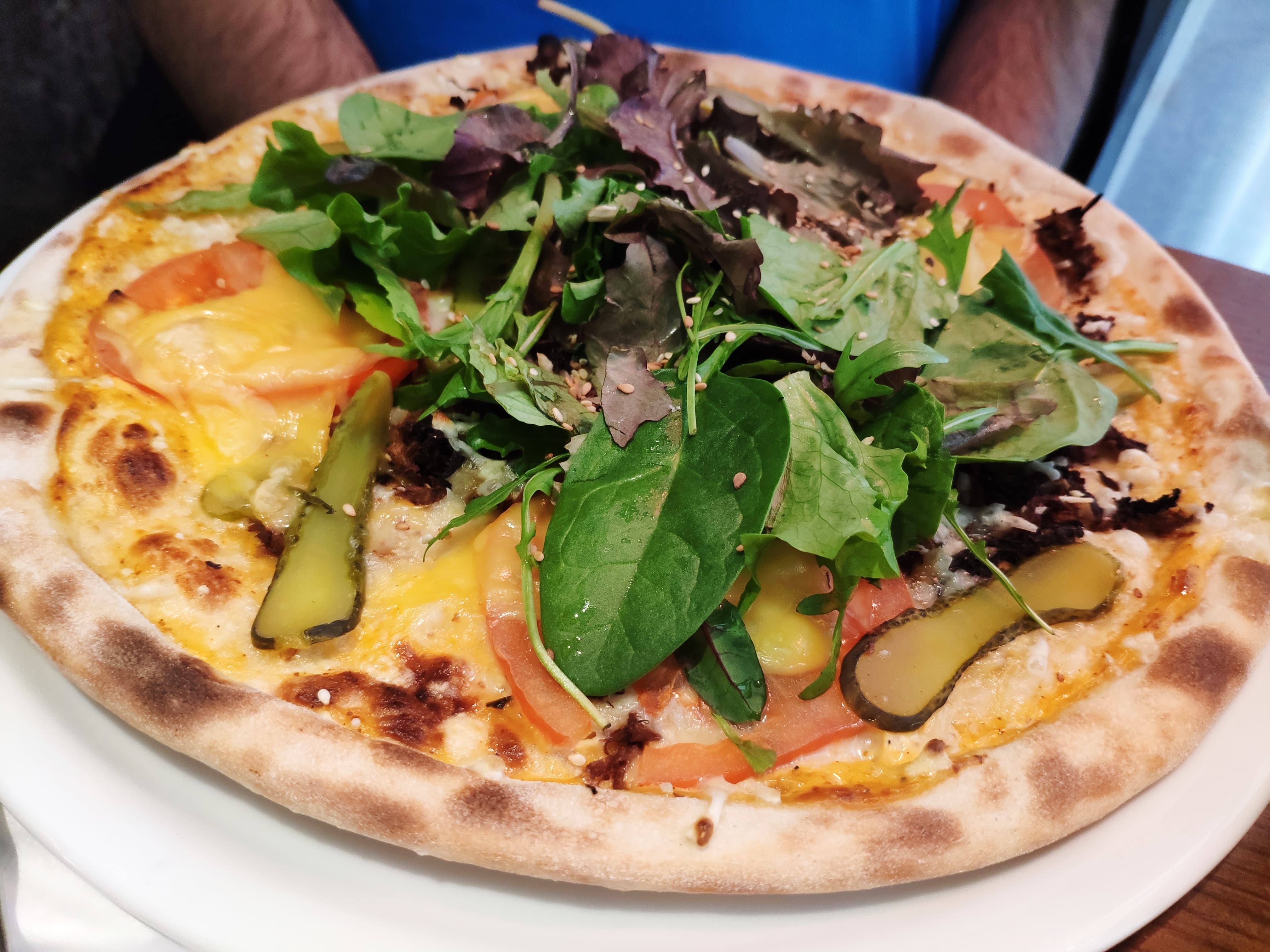 They were good pizzas, with a proper thin base and plenty of good cheese. Dr HH ordered this one with mock meat and pickles, and he really enjoyed it.