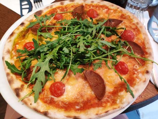 I loved the mock meat on mine, but I wish they’d listed rocket as an ingredient in the menu, so I could have asked for it to be removed. Does anybody want a massive pile of leaves on top of their pizza?!