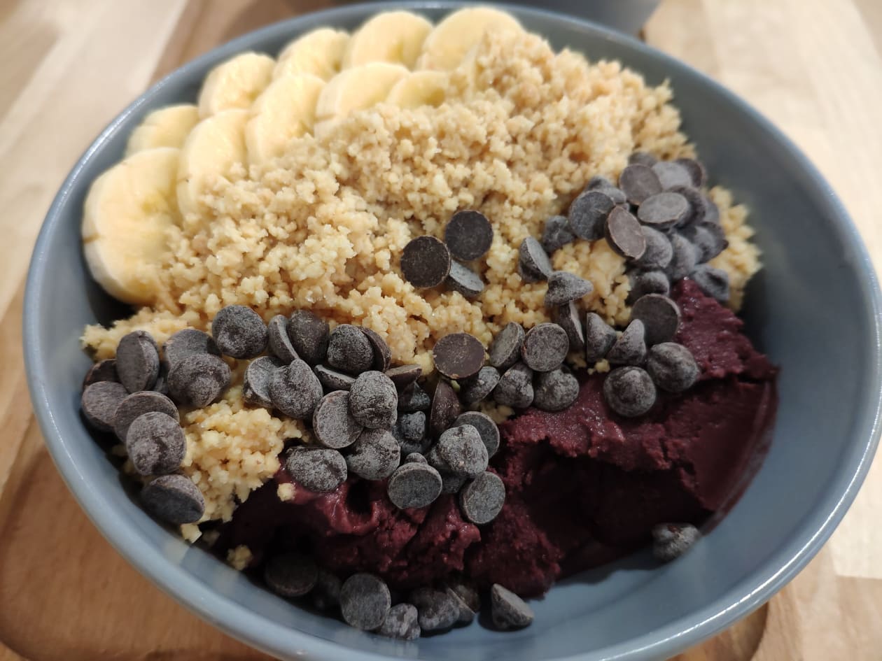 Many moons ago, Dr HH and I discovered the joys of an açaí bowl while we were in Valencia. It was a scorching hot summer, we were desperate to find somewhere to eat, and then suddenly this place with ice cold vegan options was before us. Imagine my delight at seeing that the same establishment we visited that summer in Valencia also had a branch in Granada! The set up was a bit different – it was a tiny little cafe in Valencia, but here it seemed to be the entire ground floor of a big hostel, so it was a bit more bustling but service was still fast and friendly. The menu was more extensive, too.