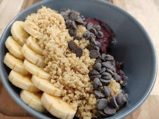 Of course though, we ordered the same dish we fell in love with back in 2016 – the standard cool, creamy bowl topped with banana, chocolate chips, and a delicious peanut crumble.