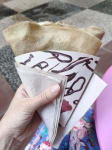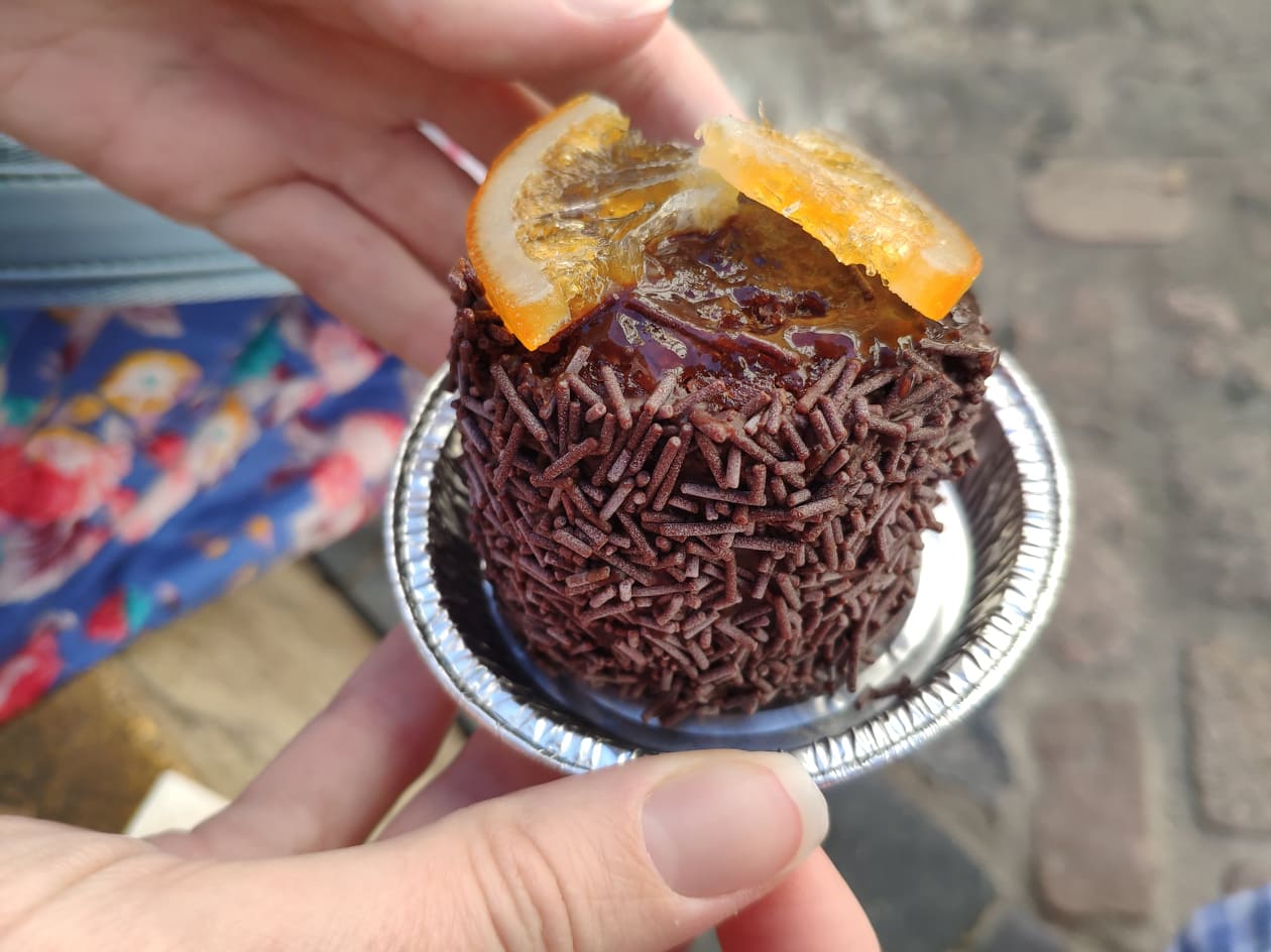 The only vegan dessert was this chocolate orange cake covered in sprinkles, so we grabbed them for the road. It was a slightly confusing situation as the cakes were essentially frozen and we were unsure if they were supposed to be eaten cold or thawed out. We didn’t have any means of carrying two little cakes around while they defrosted, so we ate them as they were. They were tasty, but it was all a bit weird!