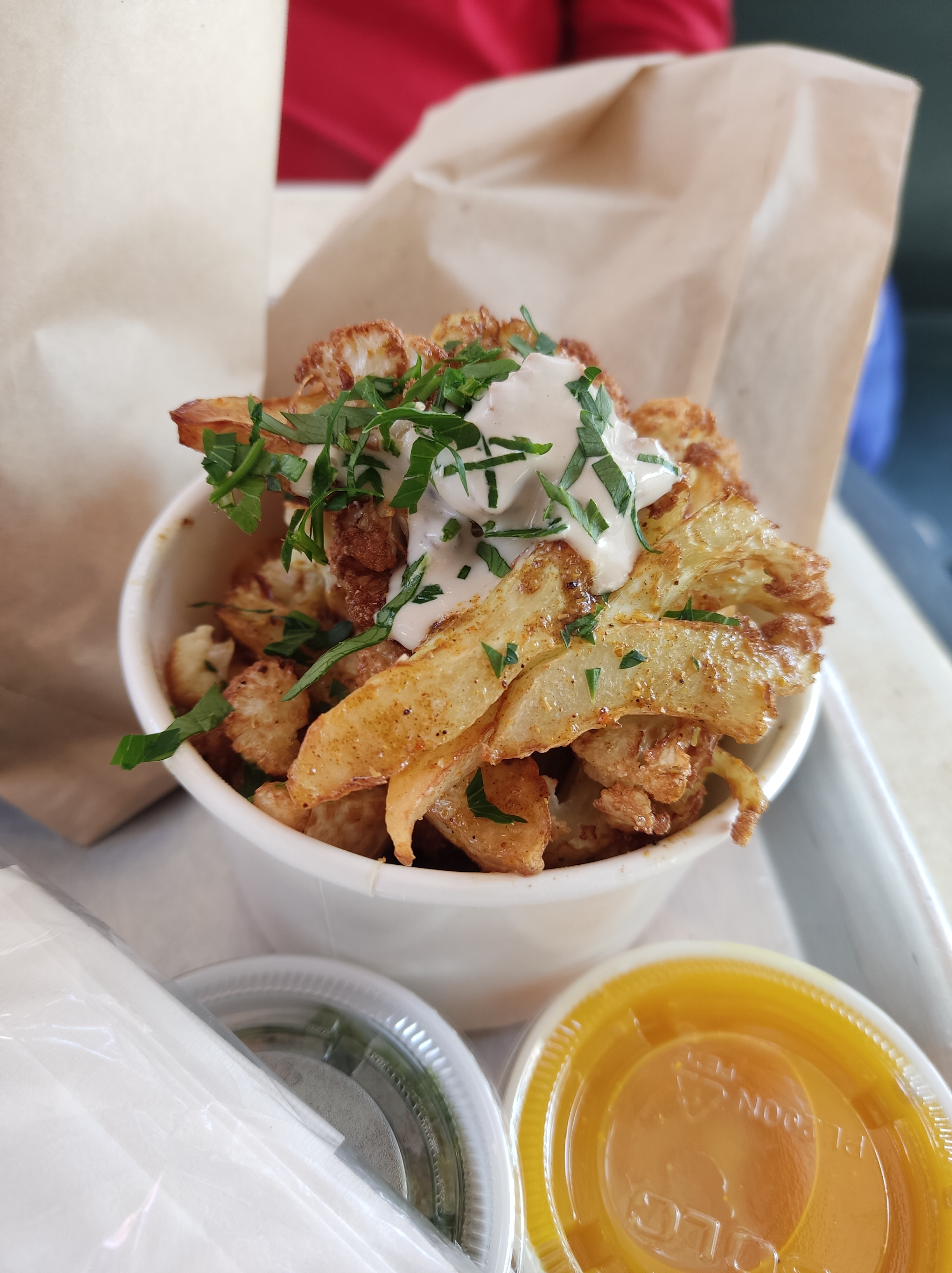 Mother HH got some falafel, which is not pictured but it was very herby and crispy, and that’s exactly what you want. I got a side portion of shawarma cauliflower, which was perfectly tender and well seasoned – I wasn’t hungry, but I wish I’d had room for another pot.