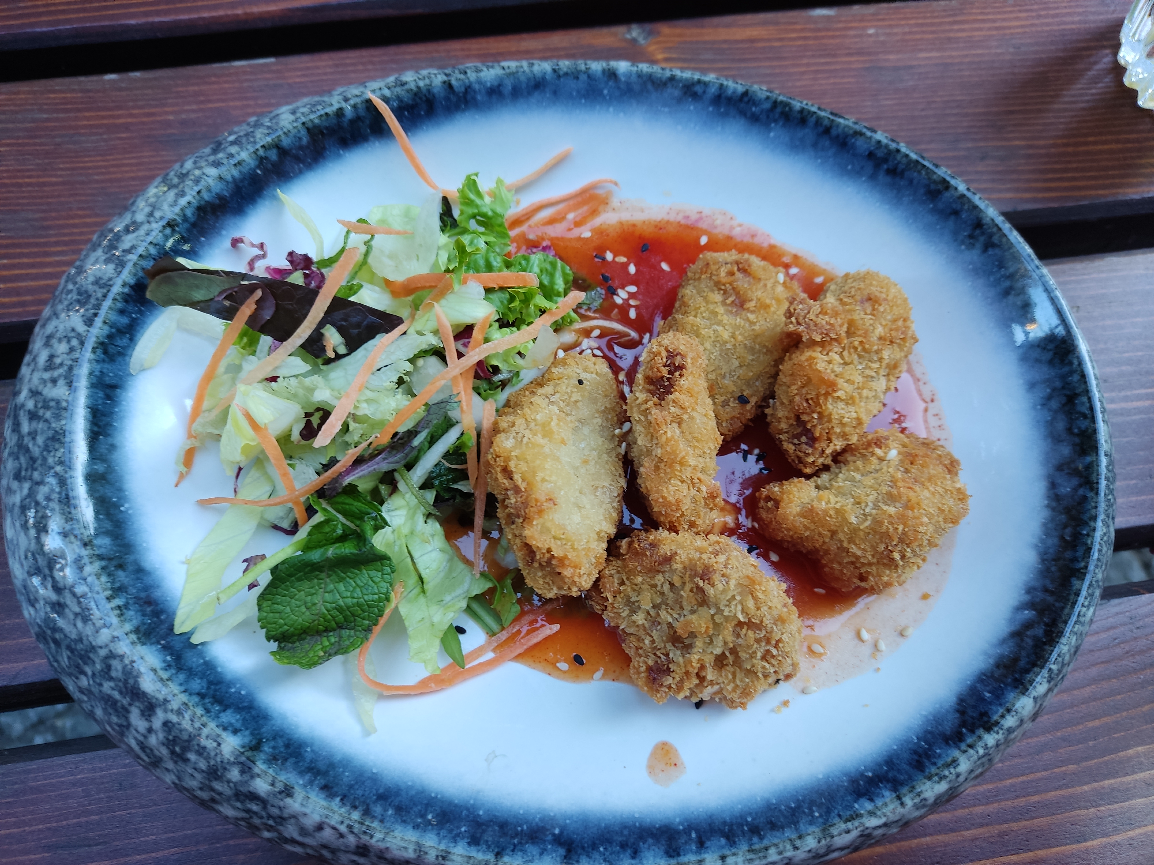 Dr HH tried the ketchup crunch, which is a very unappetising name to me. The crunch part is the coating of these soy chunks, and they’re sitting a nice spicy sauce. Despite the name, this is a dish that is very much up my street, I love a good mock meat.