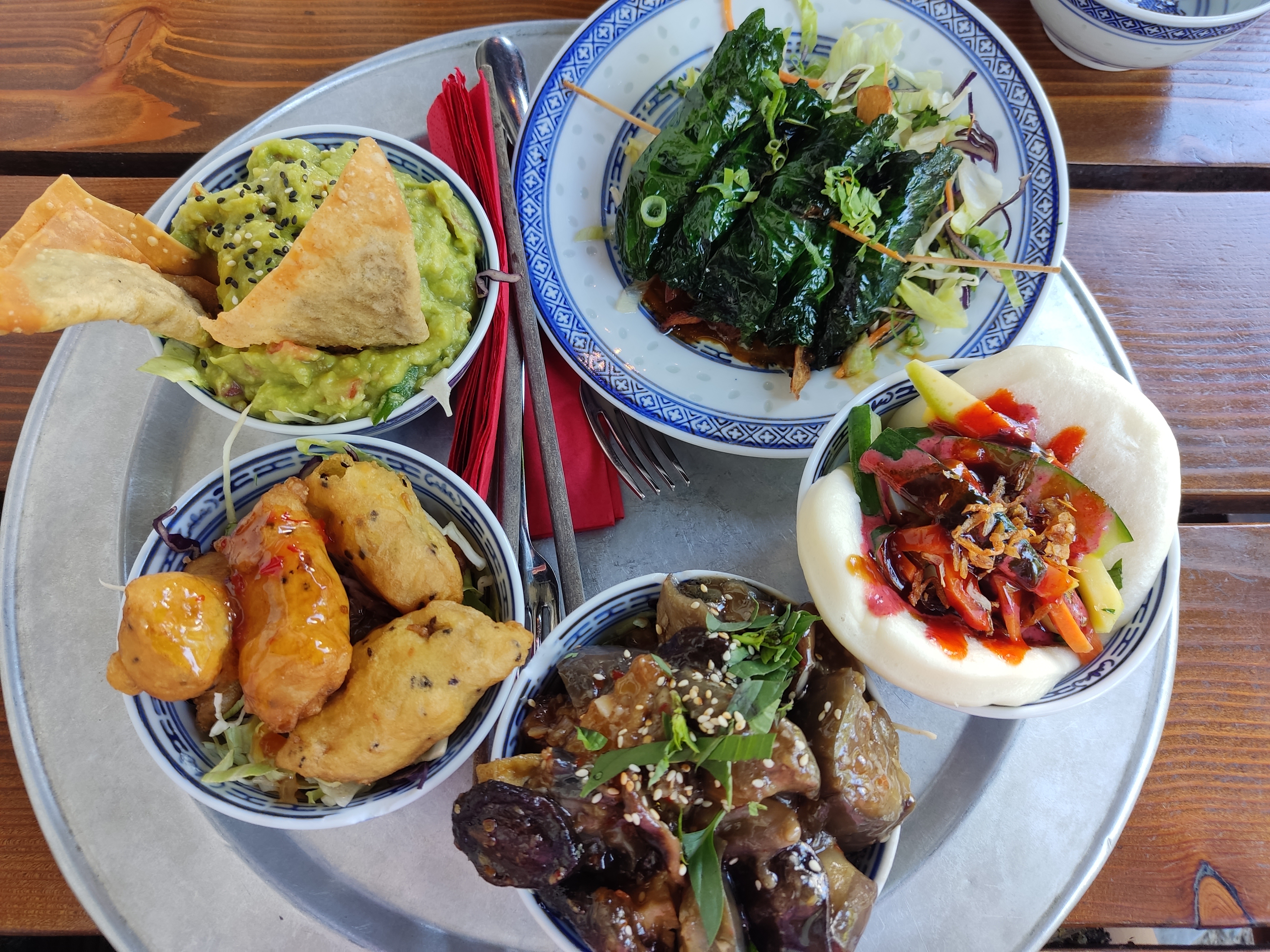 Finishing off my Berlin posts (until my next visit!), here’s a delightful vegan Asian tapas spot called 1990 Vegan Living. They don’t only serve tapas, but that’s the only section of the menu I’ve ever looked at because it’s such a treat to order lots of different dishes and try them all. This place does not take reservations, which always stresses me out a bit because I like to meticulously plan my eating itinerary, but the good news is that it’s in an extremely vegan-friendly area (you’ll see vegan options listed almost everywhere nearby) and on both of my visits I’ve got the lovely outdoor table I wanted.