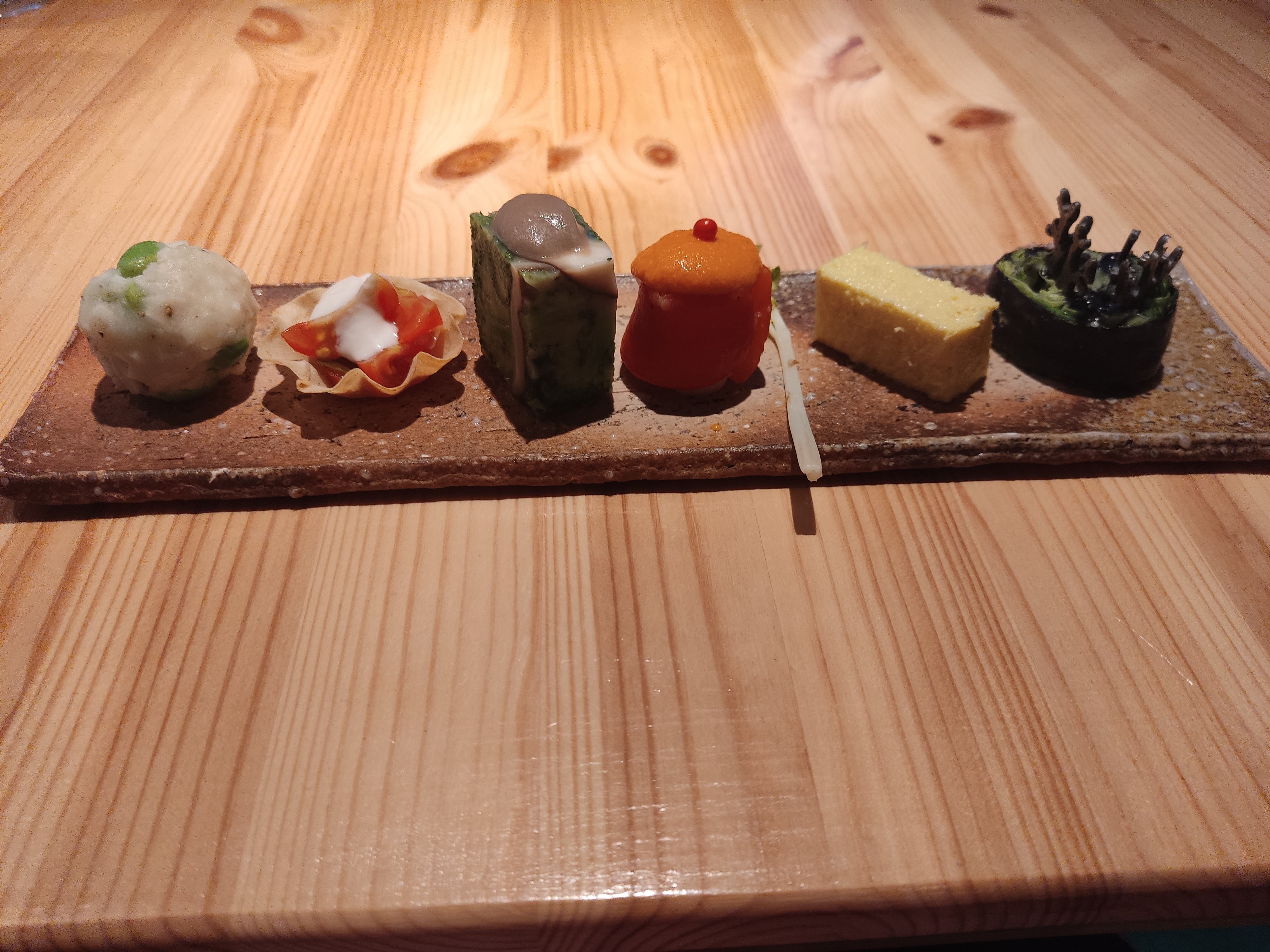 We paid 16-17,000 yen for the two of us, and that was a six course menu with a drink of our choice included. There were a few intriguing non-alcoholic drinks on the menu, so we didn’t feel like we were getting too cheated on that front. Dr HH got the mocktail of the day, which was pomegranate and mandarin, while I got the apple cinnamon drink, which tasted like a strudel!