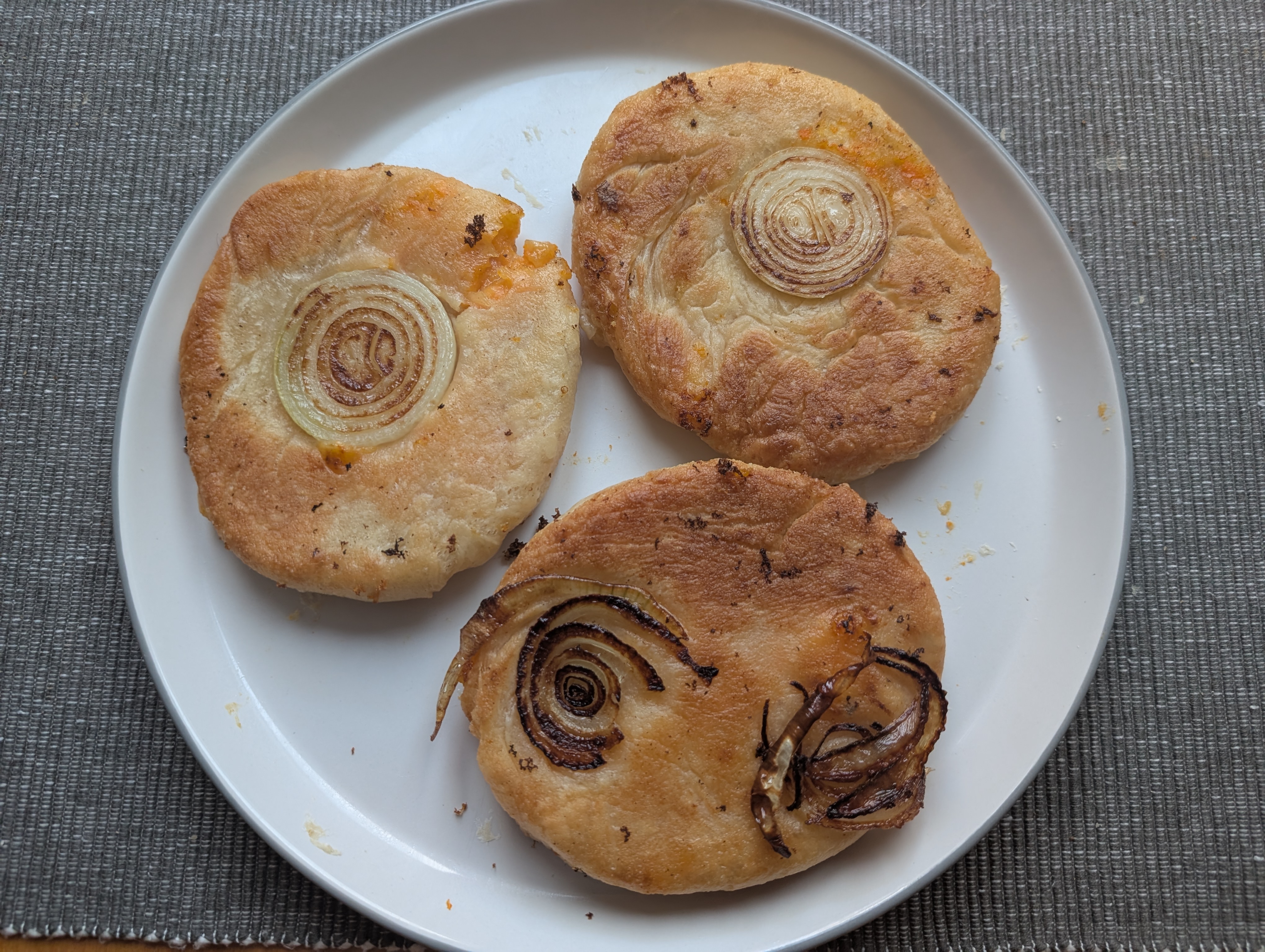 These were delicious, one of the highlights of the book! This was another one for Dr HH. He was a little bit skeptical about the cheesy filling made from potatoes carrots and vegan cheese, but it worked very well. They were relatively easy to make, and he prepared them in advance and heated them in the oven at meal time. There was a good crisp outer, they were fluffy inside, and the cheesy filling melted and oozed nicely. The onions pressed into the bottom of the pancake added a nice bit of extra texture and flavour. He never got round to making the sweet ones, despite having his eye on them. Fingers crossed for 2026!