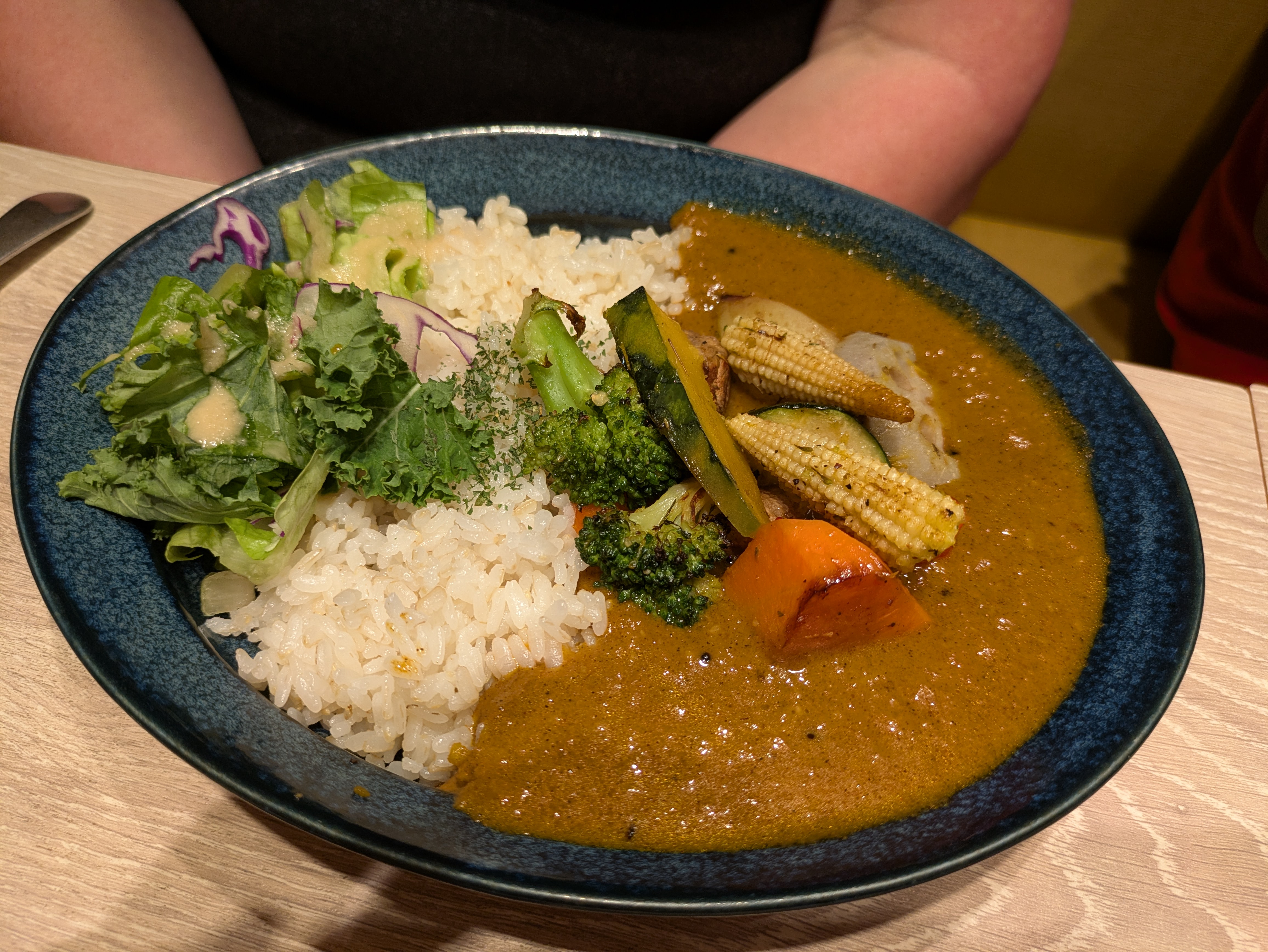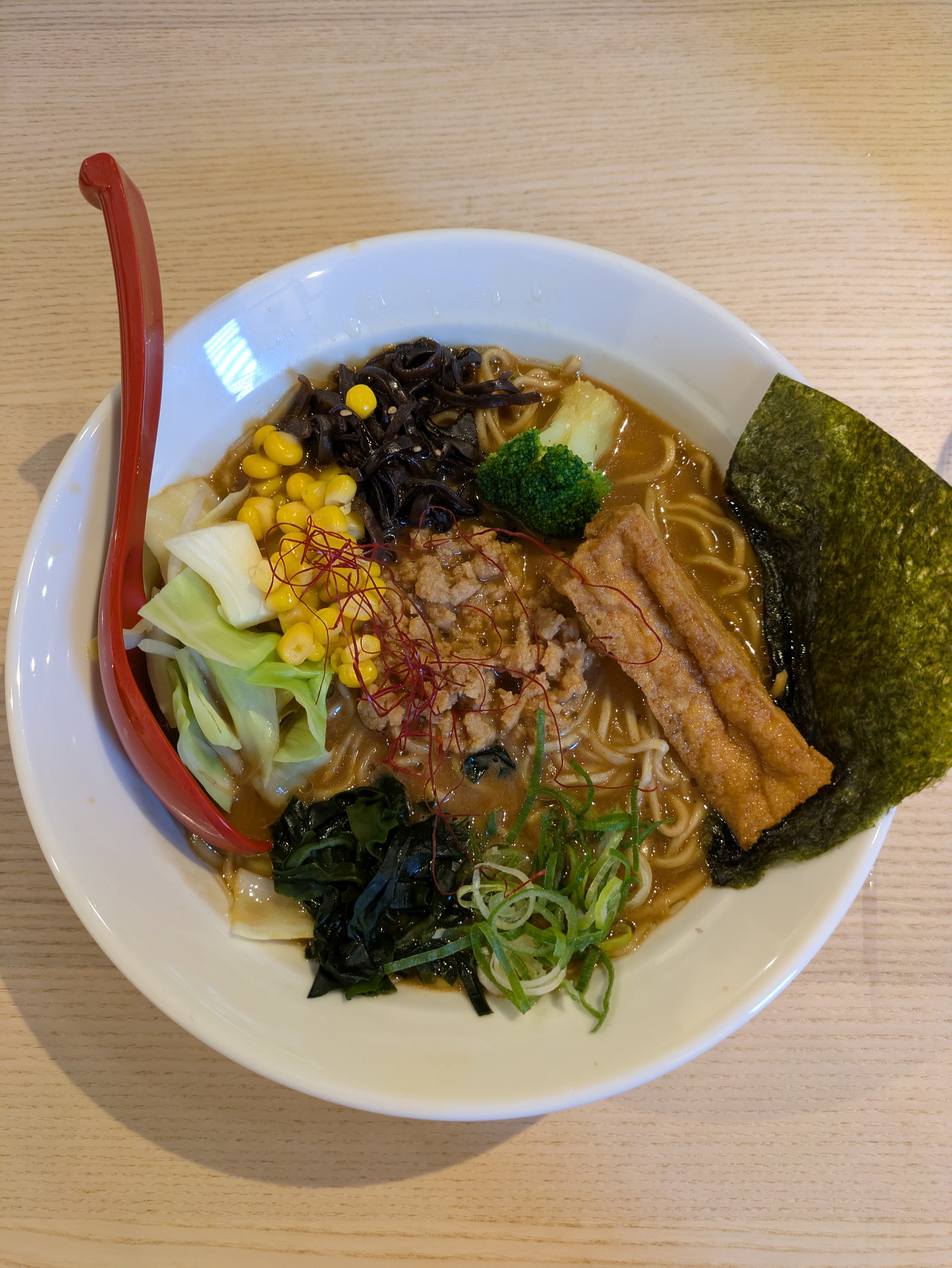 One of our favourite spots in Japan last summer was Vegan Ramen by Playpen Friends, where we had ramen with tomato broth, which we hadn’t seen anywhere else before (or since). You can read more about that here. We didn’t have chance to go back to the Osaka branch, but we were pleased to see that the same people run a vegan-friendly (but not fully vegan) branch in Nara called Vegan Friendly Ramen by Playpen Friends, so we decided to stop there on our day trip. There are quite a few vegan ramen options, though unfortunately none with the beloved tomato broth.